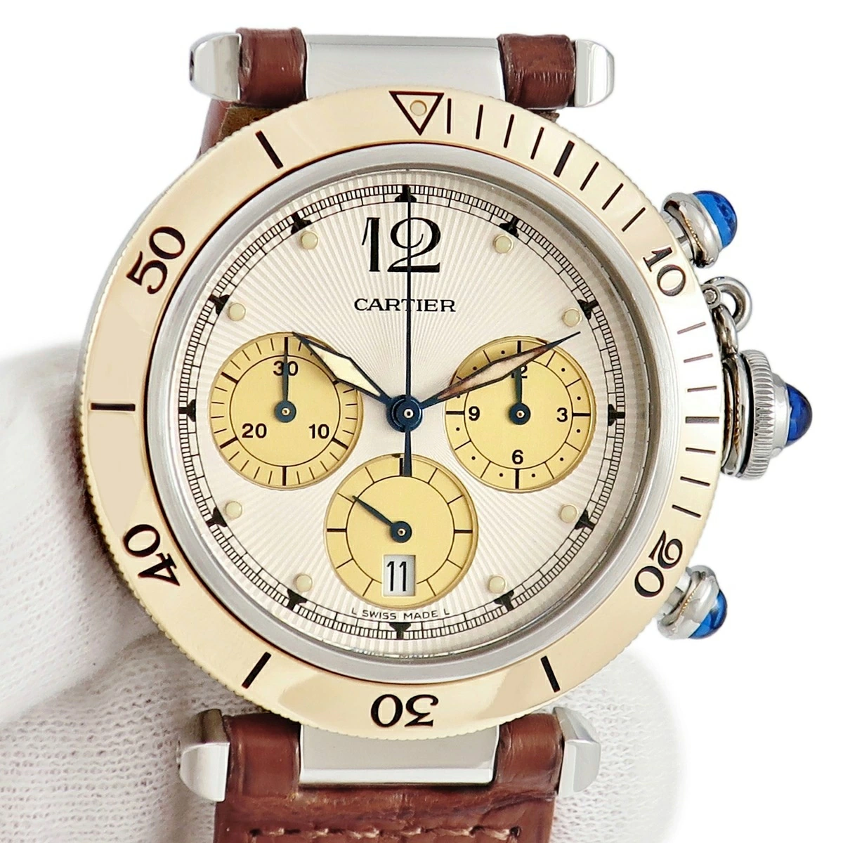 カルティエ Cartier パシャ ドゥ カルティエ プロンジャー クロノグラフ 38mm W3101155 K18YG×SS コンビ メンズ 腕時計クオーツ ホワイト 【中古】【店頭受取不可】