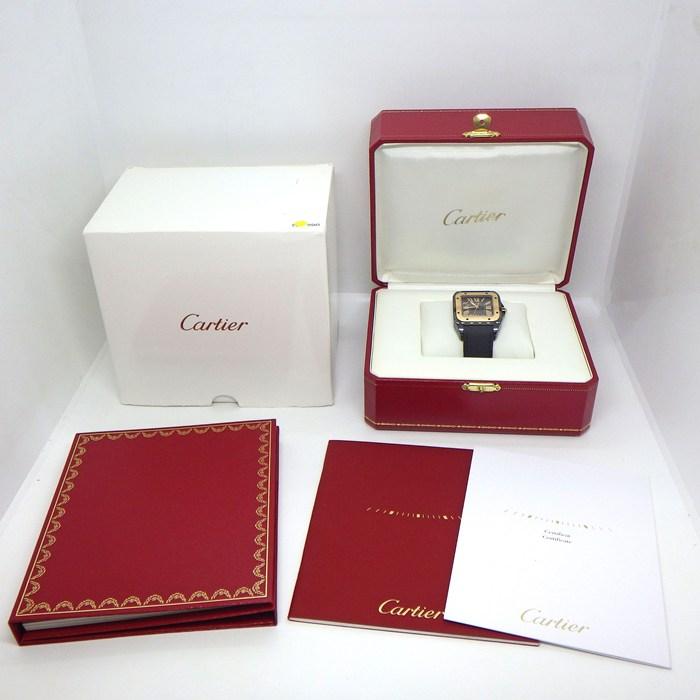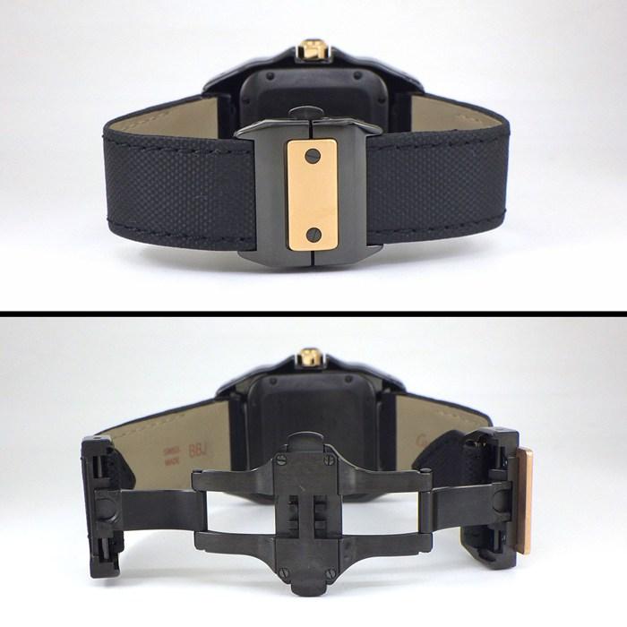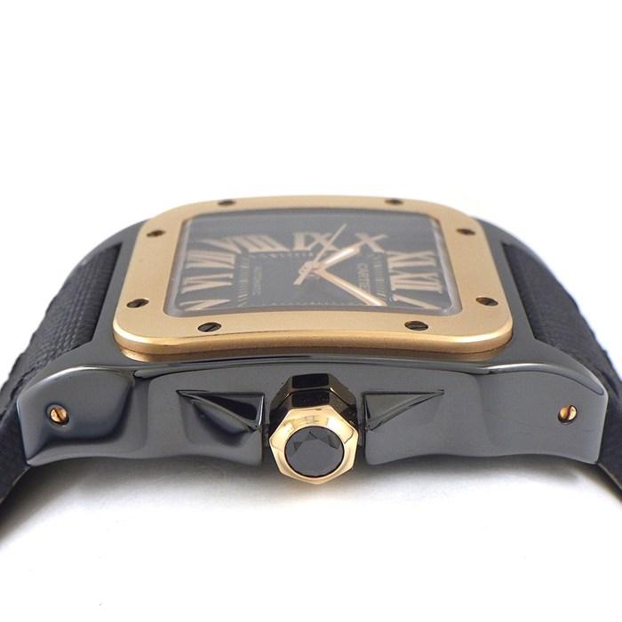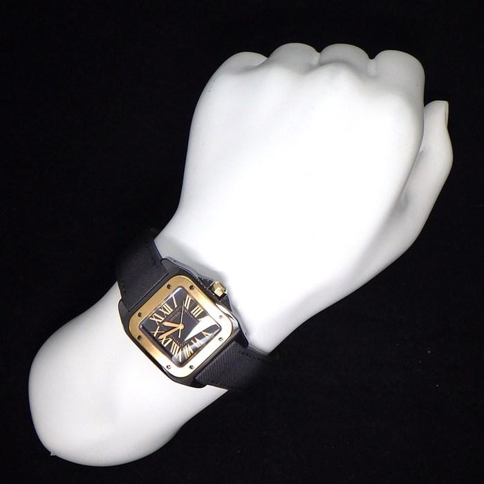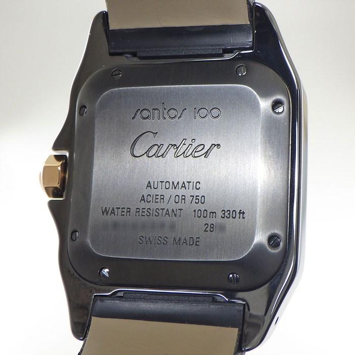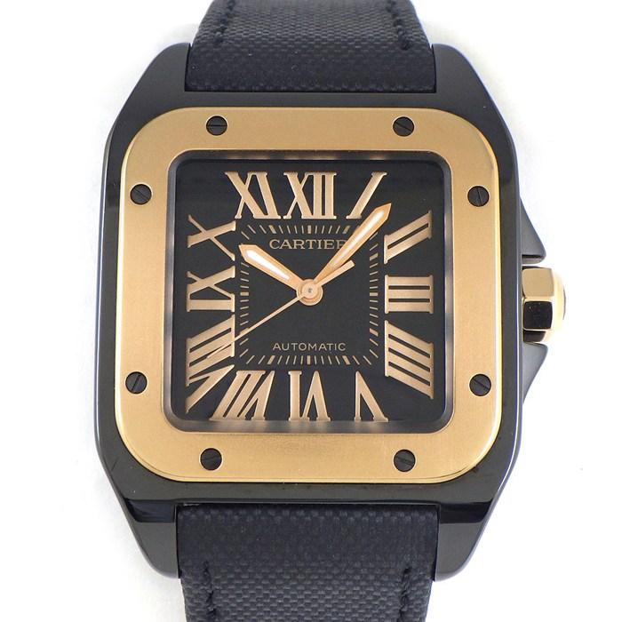 ■商品名Cartier 腕時計 サントス100 MM W2020007 スクエア ブラック文字盤 SS K18PG ブラック ファブリック/レザー トワルストラップ 自動巻き 【箱・保付き】 【中古】