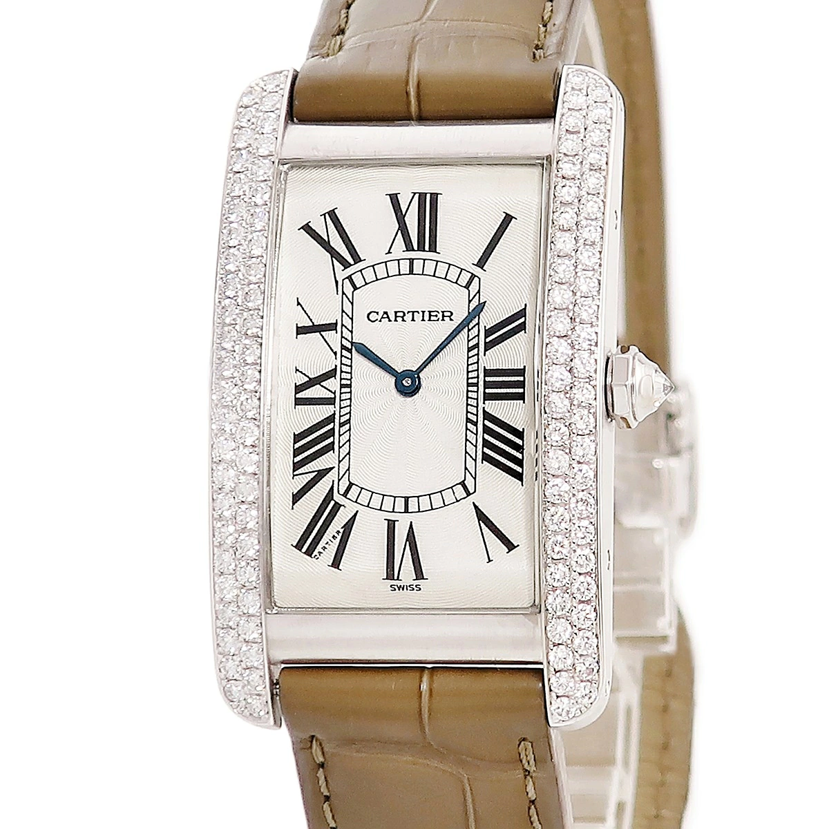 カルティエ Cartier タンクアメリカン LM WB701351 K18WG無垢 純正ダイヤ ギョウシェ 青針 メンズ 腕時計自動巻き シルバー 【中古】【店頭受取不可】