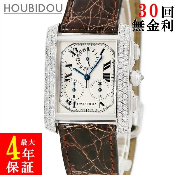 カルティエ Cartier タンクフランセーズ XL クロノグラフ WE1004S4 K18WG無垢 純正ダイヤ デイト 青針 メンズ 腕時計クオーツ シルバー 【中古】【店頭受取不可】