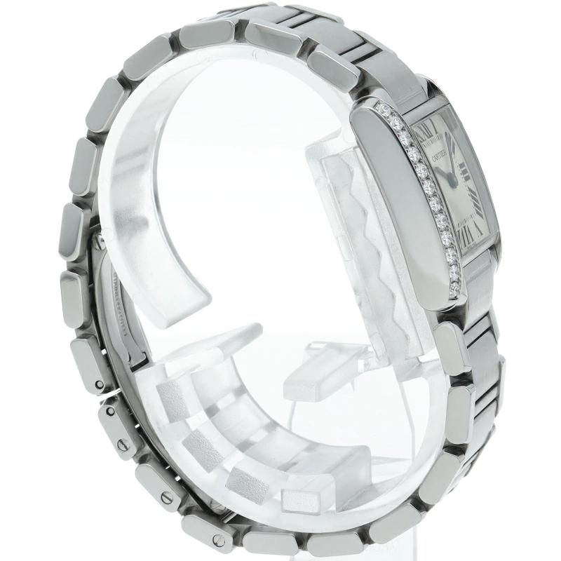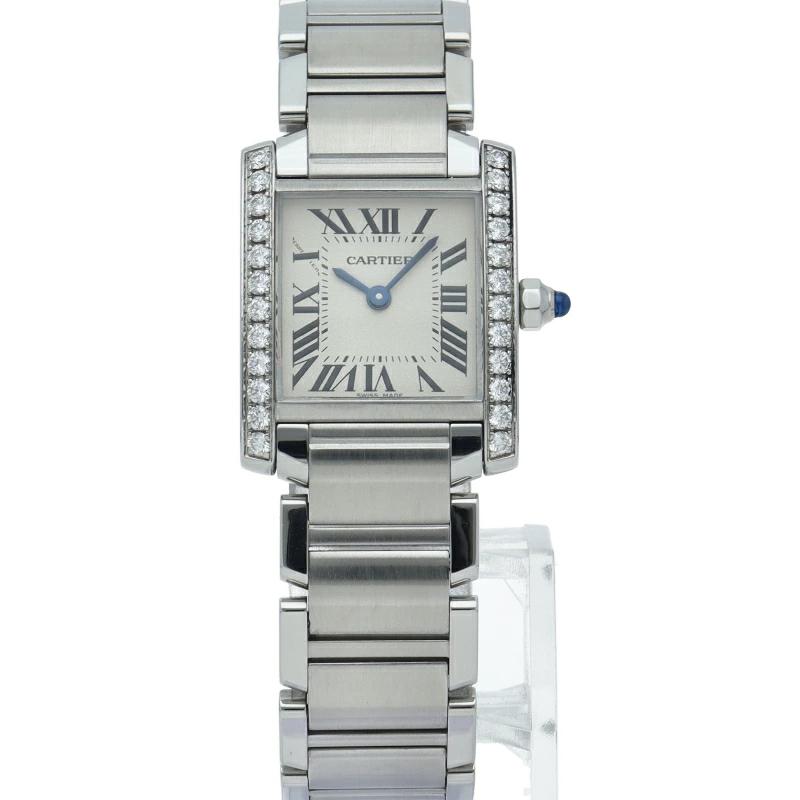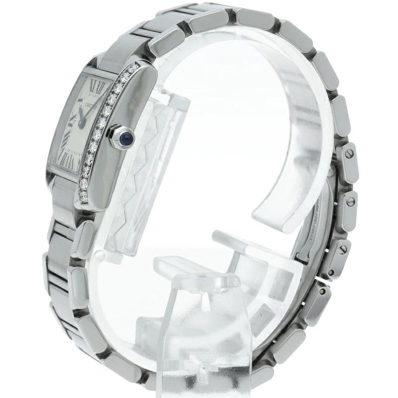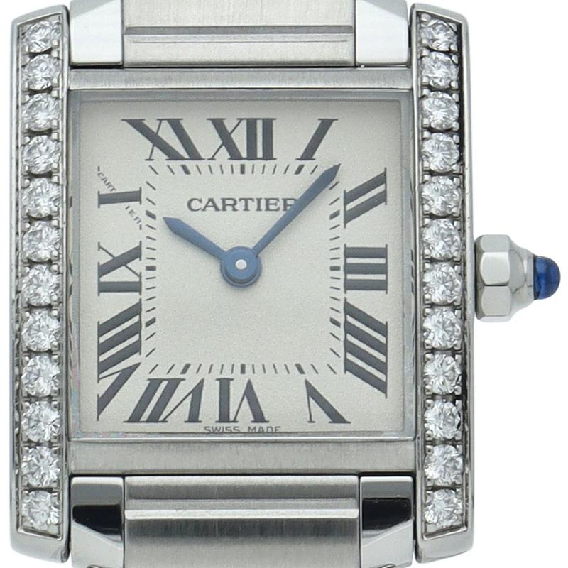| カルティエの人気モデル「タンクフランセーズ」。ケースサイドにダイヤモンドがセッティングされたワンランク上のモデルです。 |