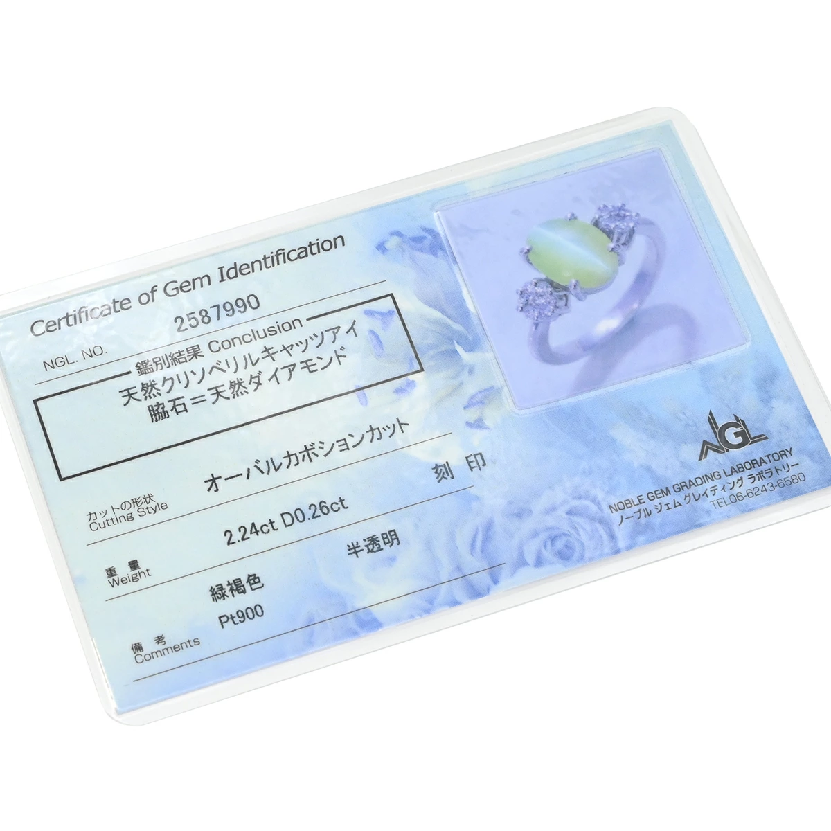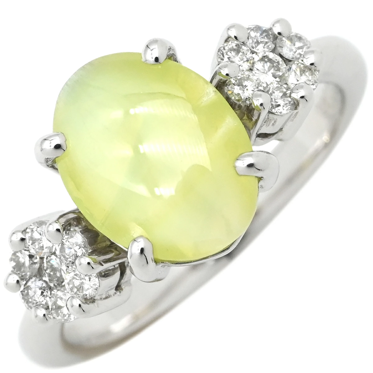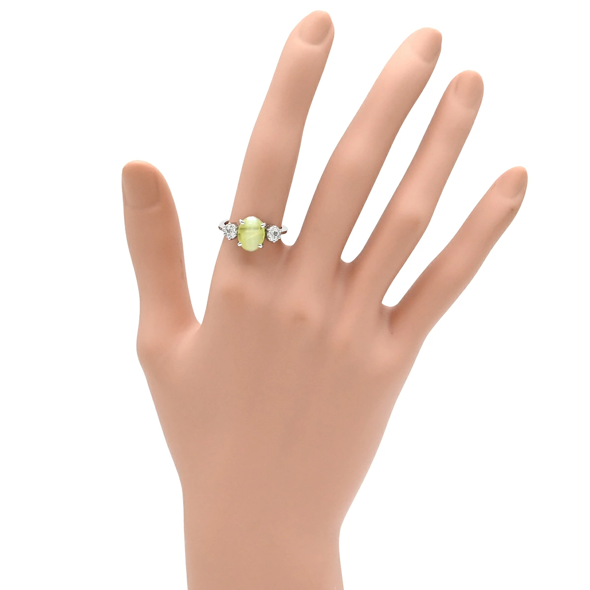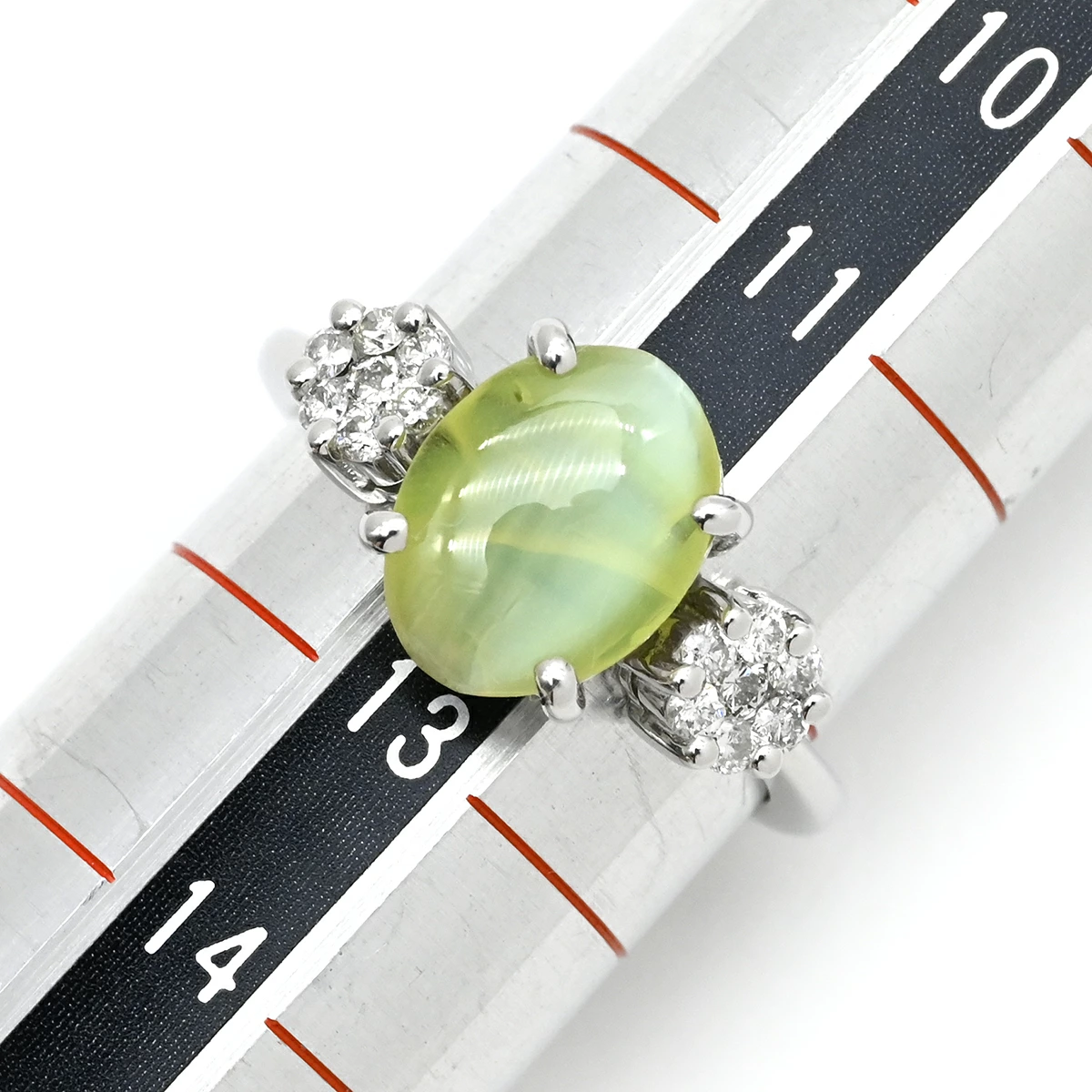 ノンブランド NON BRAND リング 指輪 キャッツアイ ダイヤリング Pt900 クリソベリルキャッツアイ ダイヤモンド プラチナシルバー 猫目石 12号 レディース定番 人気 美品 【中古】