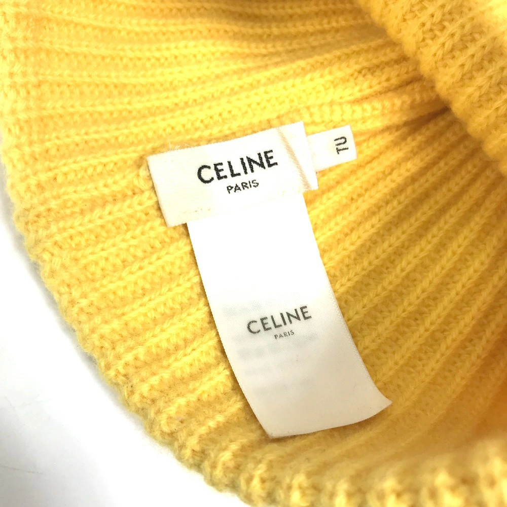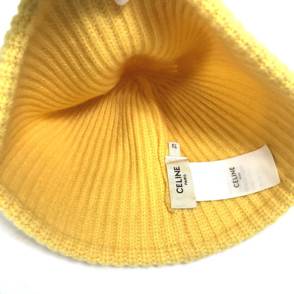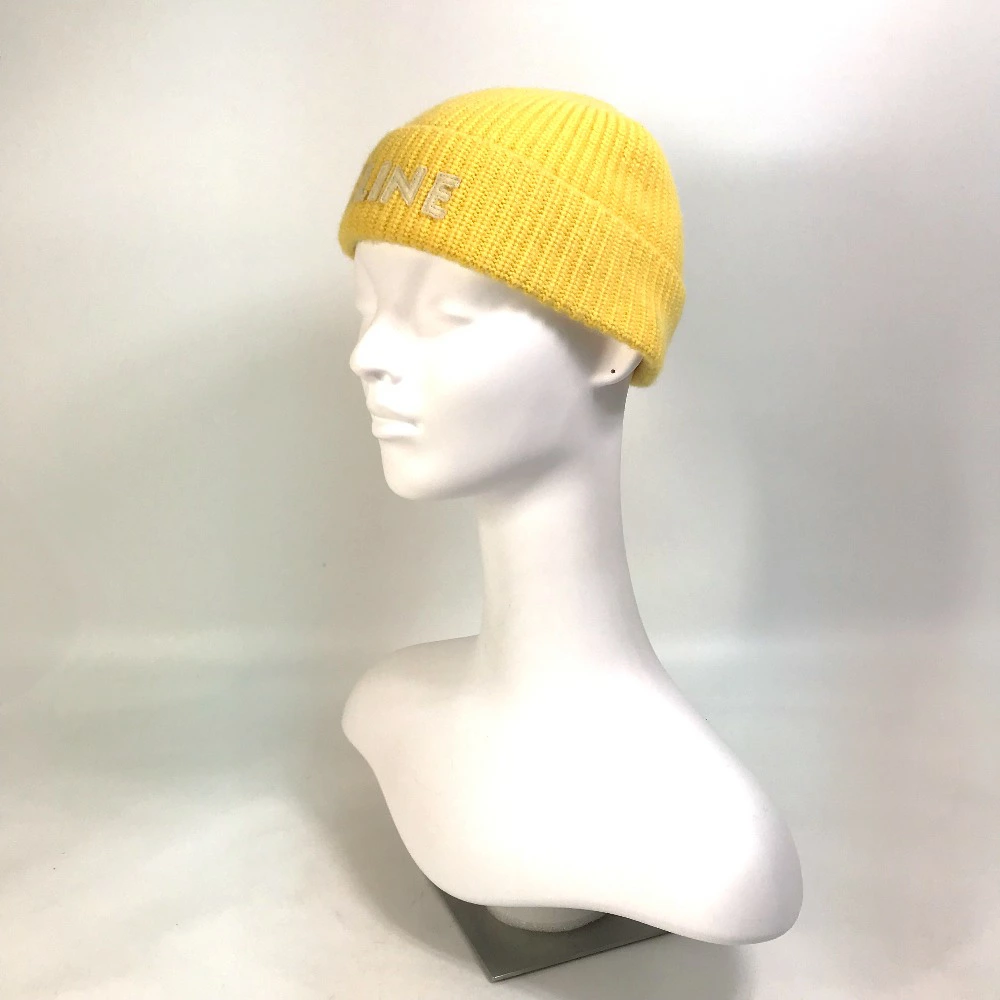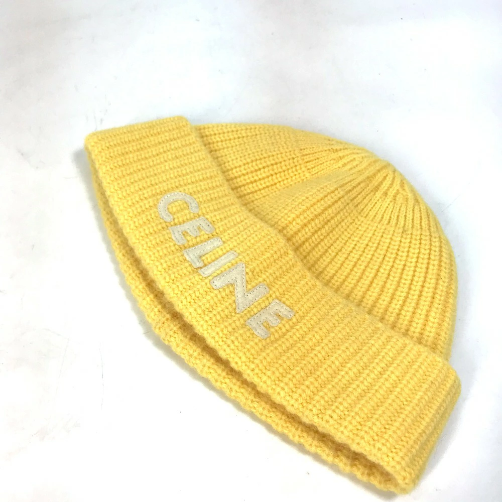 | 商品説明 | セリーヌの名前が入った黄色のニット帽です。丸いフォルムになっています。 |