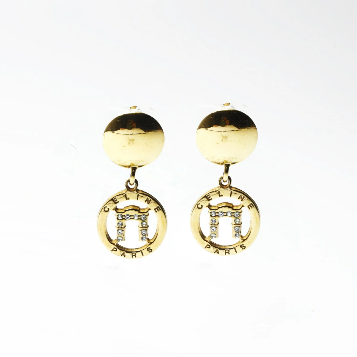 Pre-owned Celine Arc de Triomphe rhinestone earrings, gold, WS24155