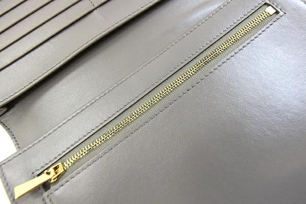 | 状態 | 外側:フチの折部分にコーティング割れあり。 内側:所々押し跡、カード収納跡、ポケットに薄スレあり。小銭入れにコイン跡あり。 金具:スレ、クスミ、ファスナーレールに色落ちあり。 |