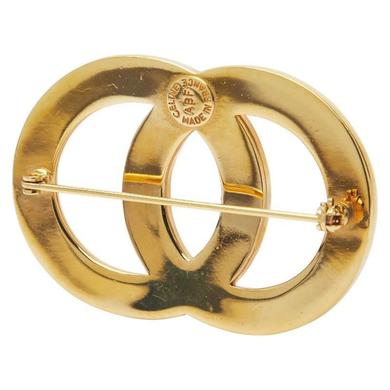 Pre-owned Celine Circle Logo Rhinestone Brooch, Gold Plated, Women's