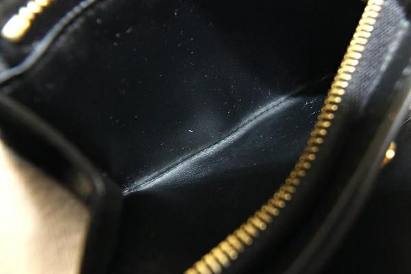 | 状態 | 外側:若干型崩れあり。フチに薄スレ、白い汚れあり。 内側:薄スレあり、中央折り目フチに小さなヒビ割れあり。小銭入れに硬貨跡、薄汚れあり。 金具:小キズ、スレあり。 |