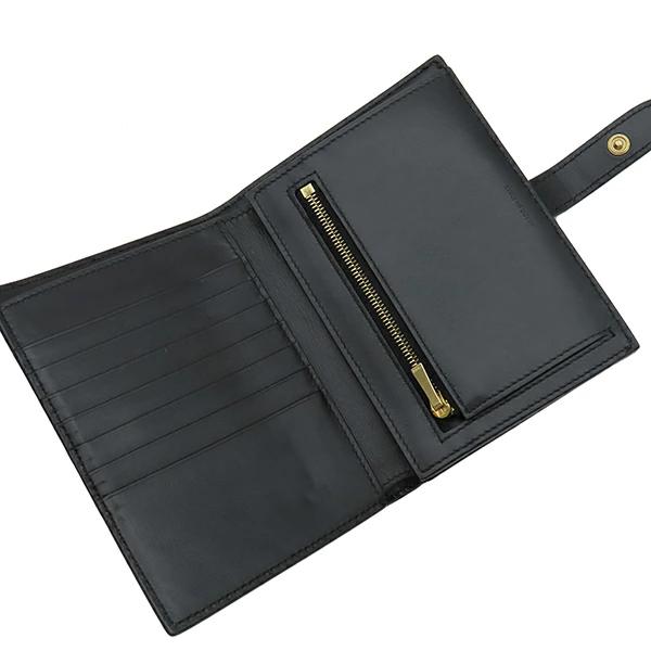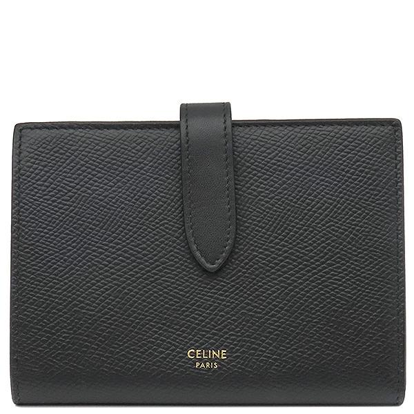 セリーヌ CELINE 二つ折り財布 ミディアム ストラップ ウォレット レザー ブラック 黒 ゴールド金具 - レディース定番 人気 美品 【中古】