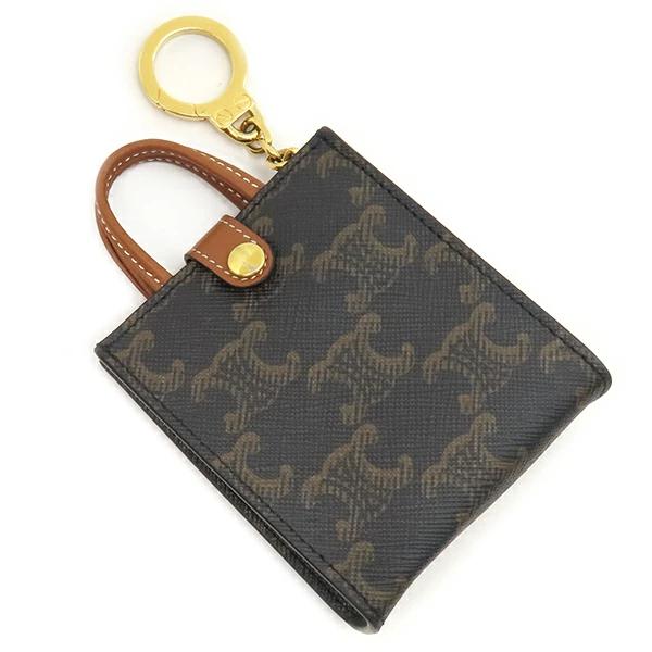 セリーヌ CELINE バッグチャーム マイクロ バーティカル カバ キャンバス トリオンフキャンバス タン 茶 白ロゴ トリオンフ カバンモチーフ ゴールド金具 10I492CZ1 レディース定番 人気 美品 【中古】