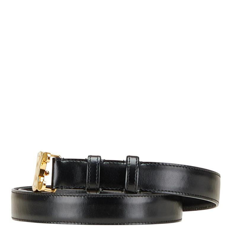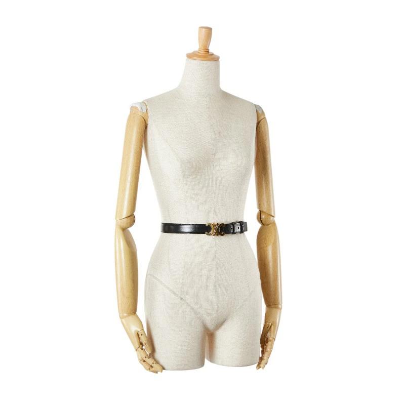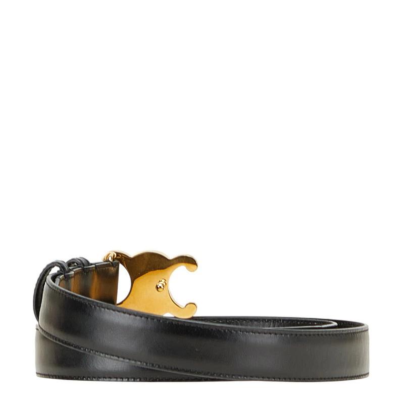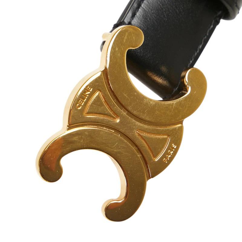 Pre-owned Celine Triomphe Belt, Size 80, Black and Gold Leather, Men's