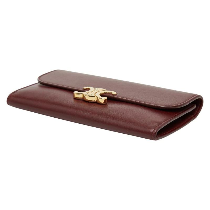 - セリーヌ トリオンフ 長財布 ワインレッド ボルドー レザー レディース CELINE 【中古】