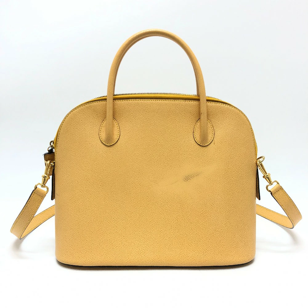 Pre-owned Celine Vintage Bowling 2-Way Shoulder Bag in Yellow Beige Leather.