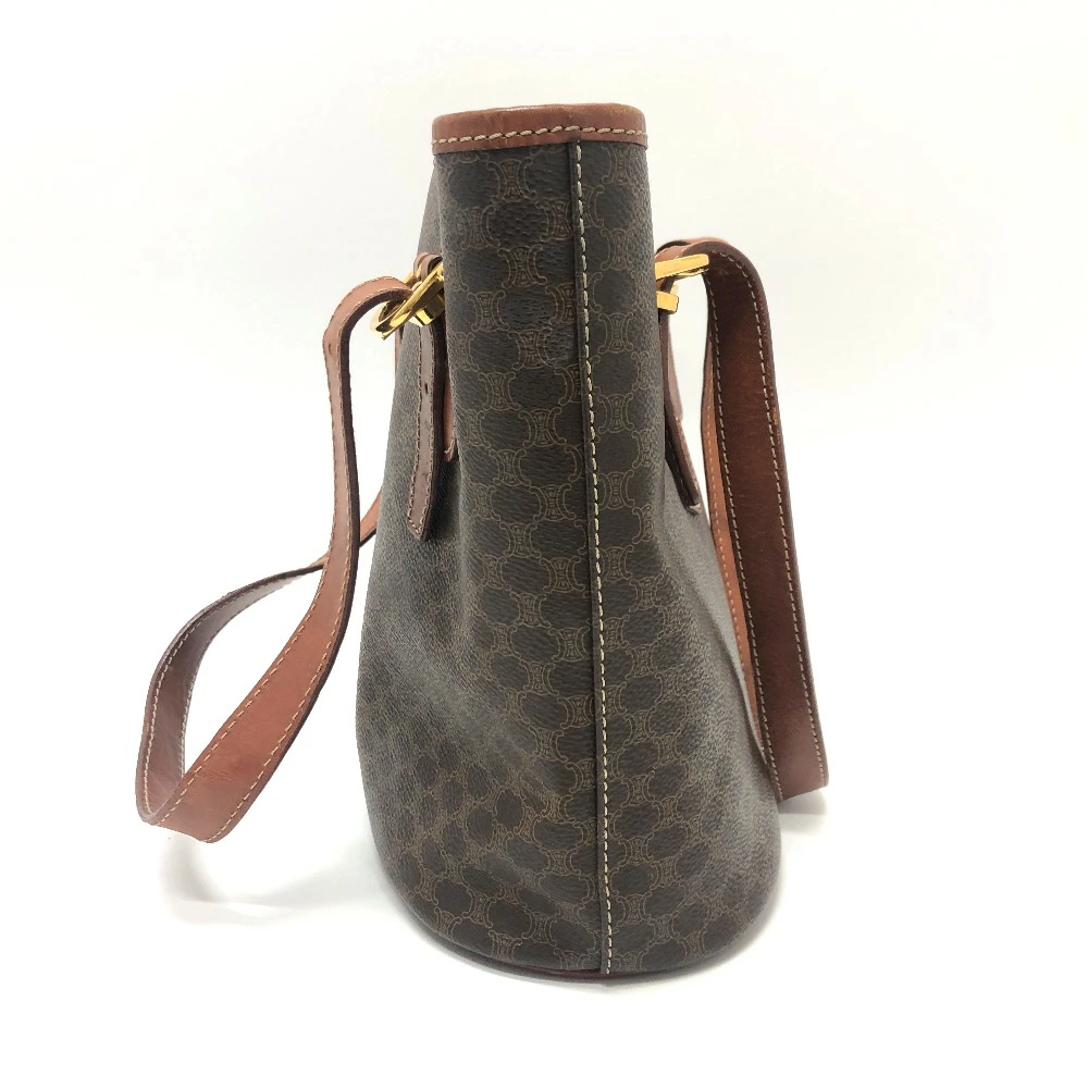 Pre-owned Celine Vintage Macadam Bucket Handbag/Tote Bag in Brown PVC/Leather.