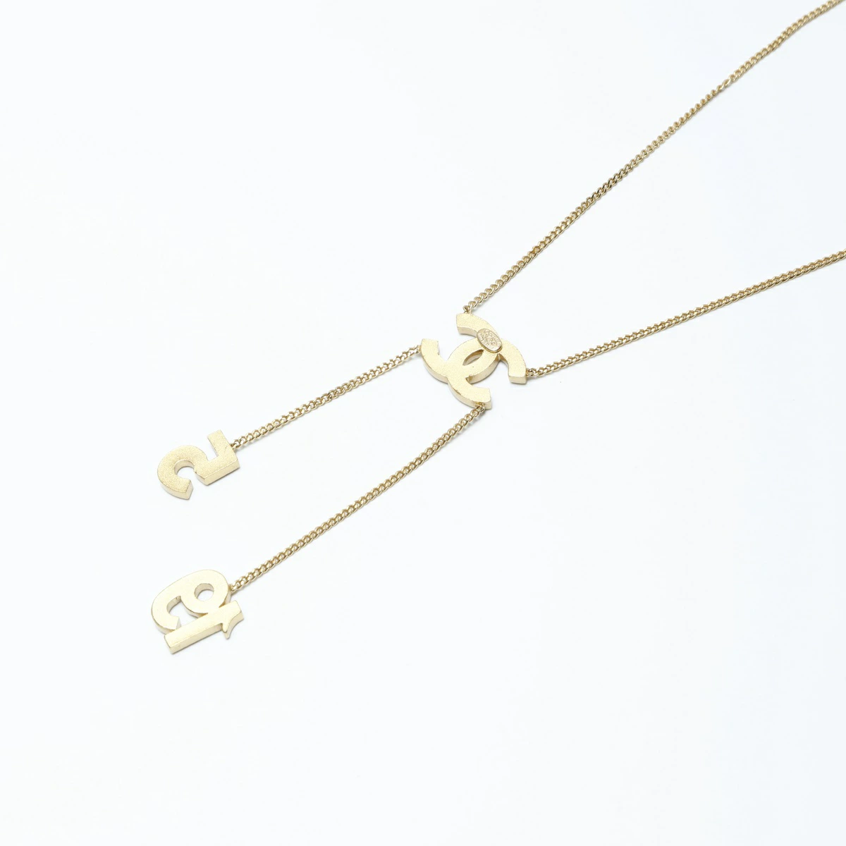 Pre-owned Chanel 01C 2011 Rhinestone Coco Mark Necklace in Gold (WS24316)