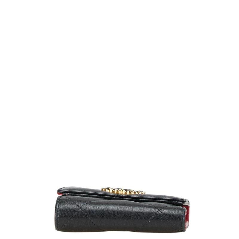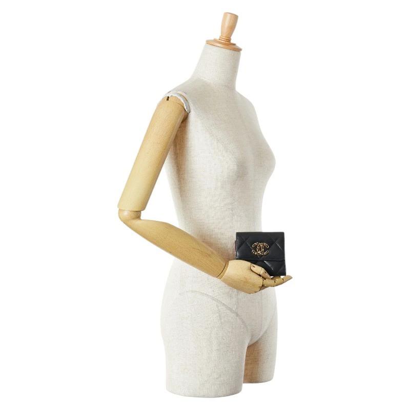 Pre-owned Chanel 19 Coco Mark Tri-fold Wallet, Small Flap Wallet AP1064, Black and Pink Lambskin, Women's