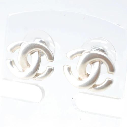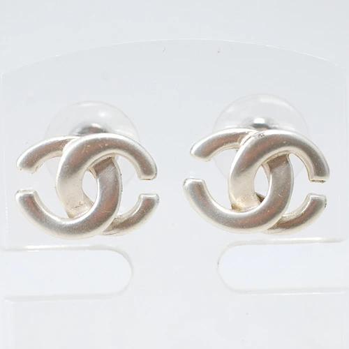 Pre-owned Chanel 2001 Coco Mark earrings, matte silver, 01A, non-original backing.
