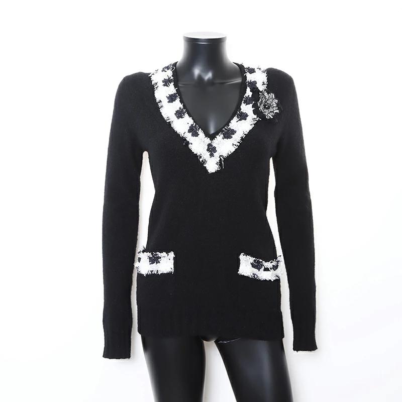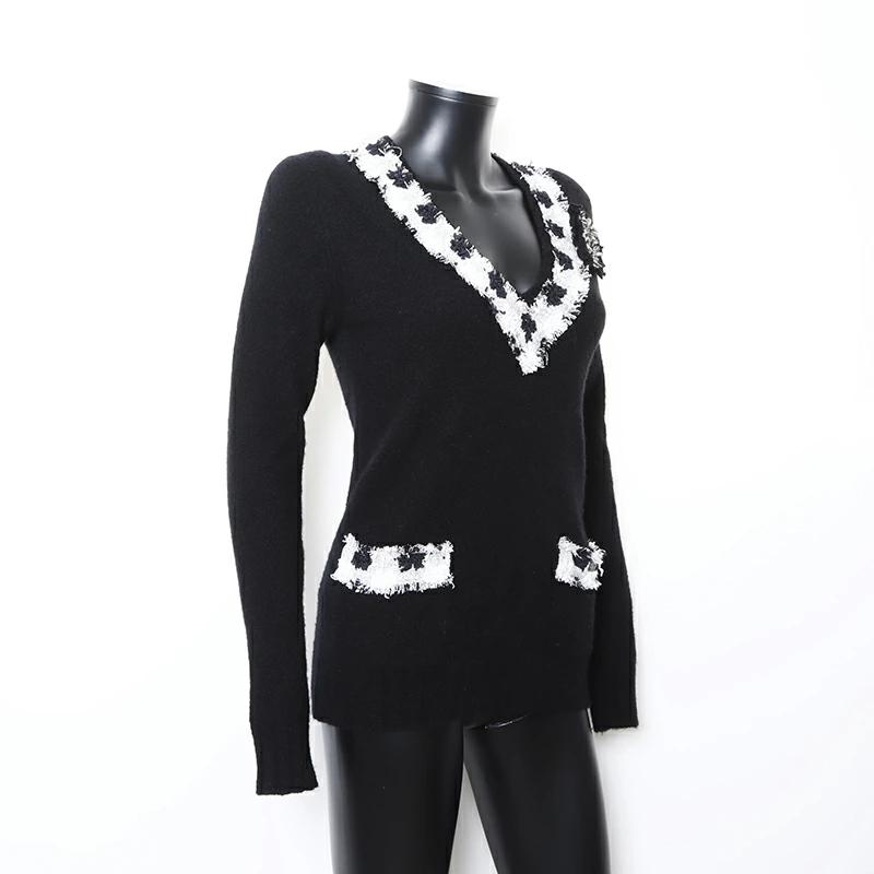 Pre-owned Chanel 2005 long-sleeved knit sweater in black (WS9088)