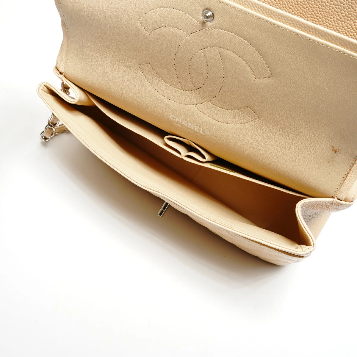 商品名 シャネル CHANEL 15番台 2011 キャビアスキン ダブルフラップ マトラッセ 30cm シルバー金具 ショルダーバッグ ベージュ WS25287 【中古】 コンディションランク B コンディション詳細 使用感があるものの傷や汚れが少なく、比較的状態の良い商品 |