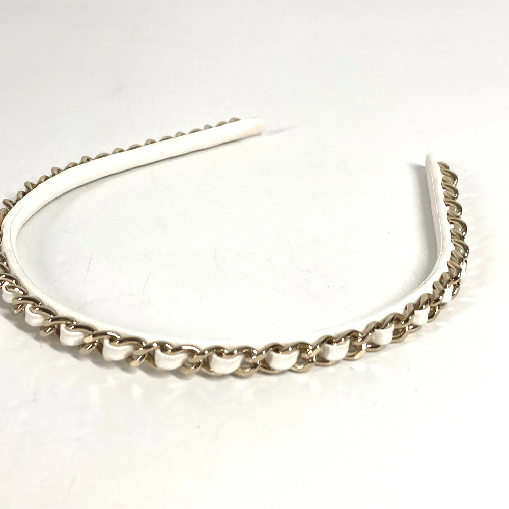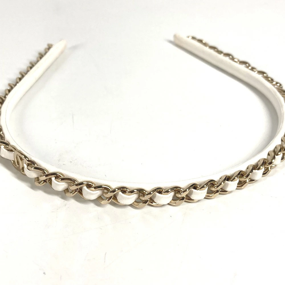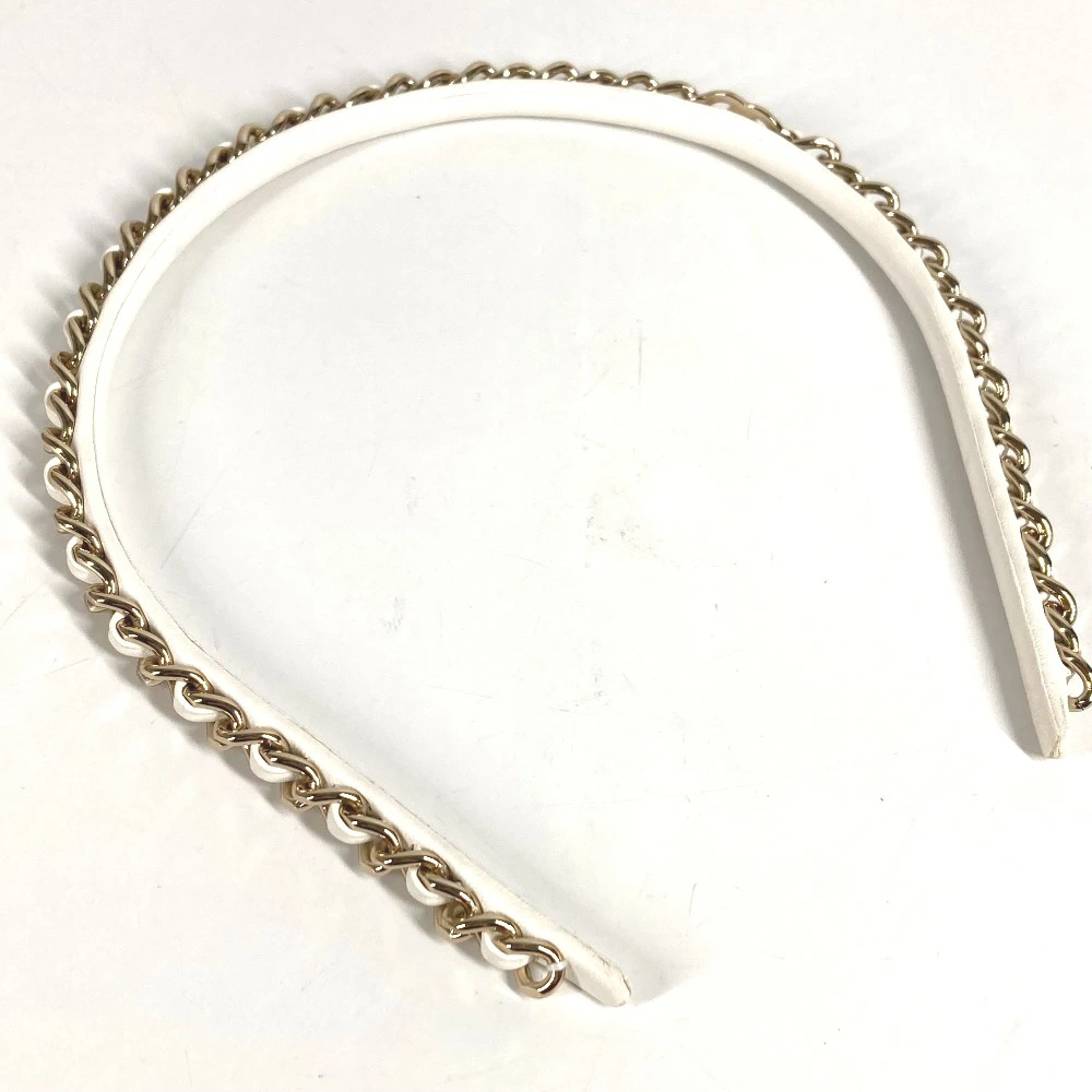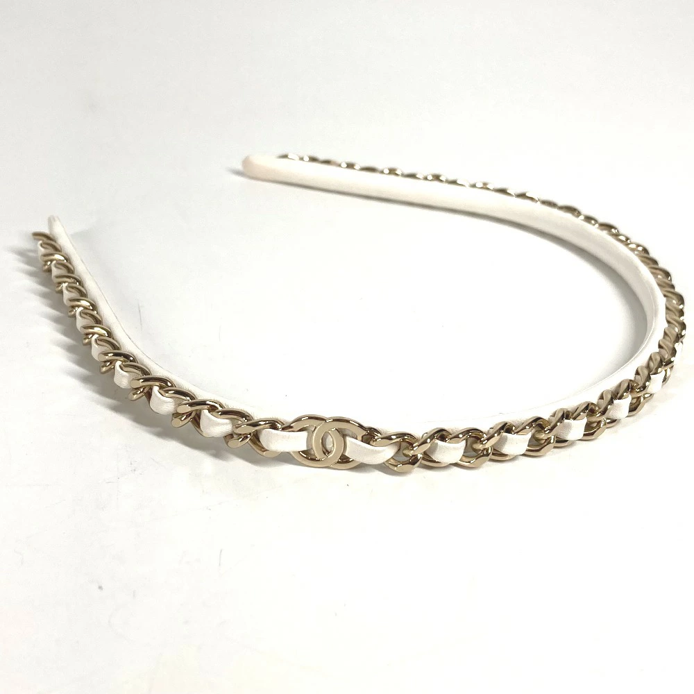Pre-owned CHANEL 22S Chain CC Coco Mark Hair Accessory Headband Leather Headband Women's White