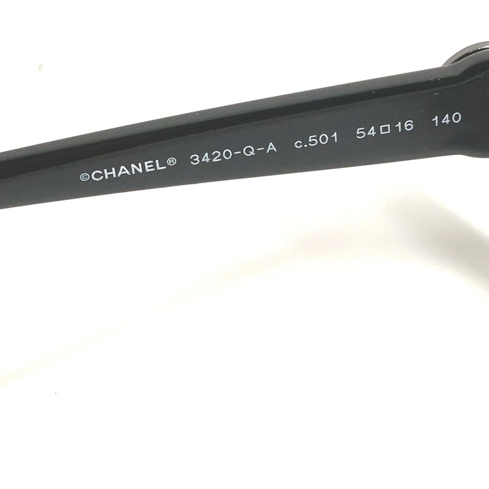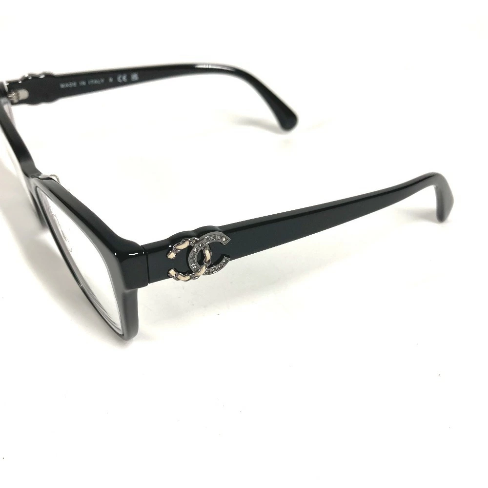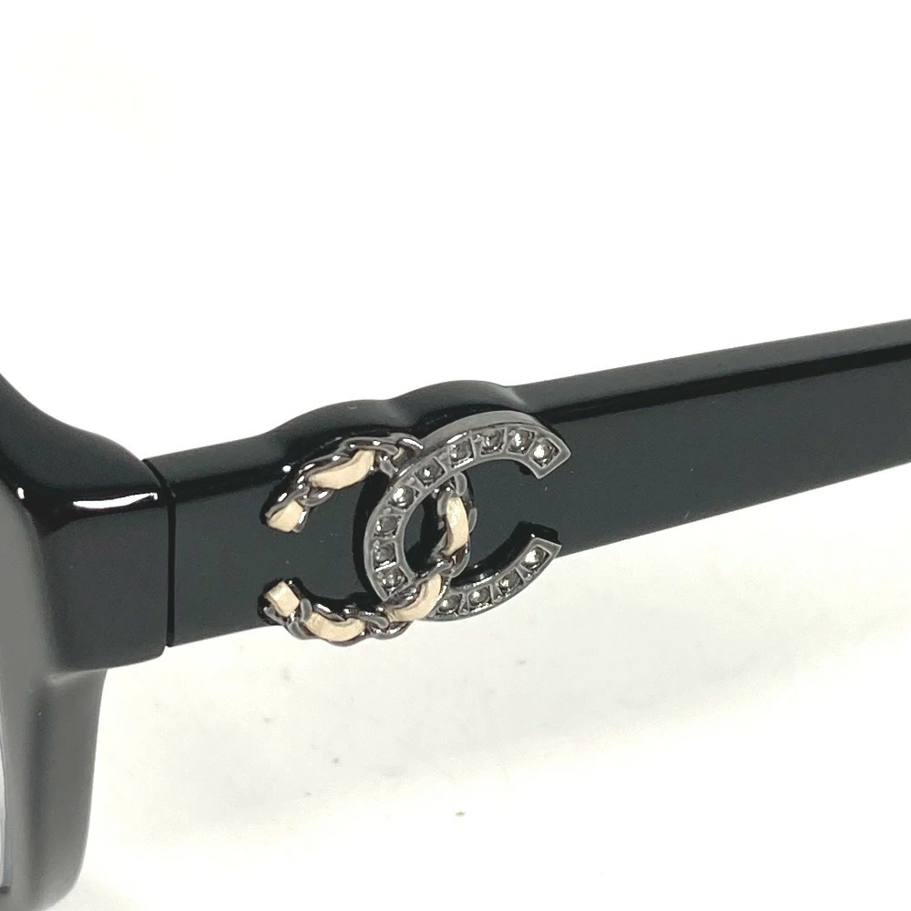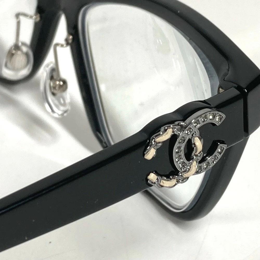 Pre-owned CHANEL 3420-Q-A CC Coco Mark Logo Rhinestone Chain Eyeglasses Sunglasses Plastic Women's Black