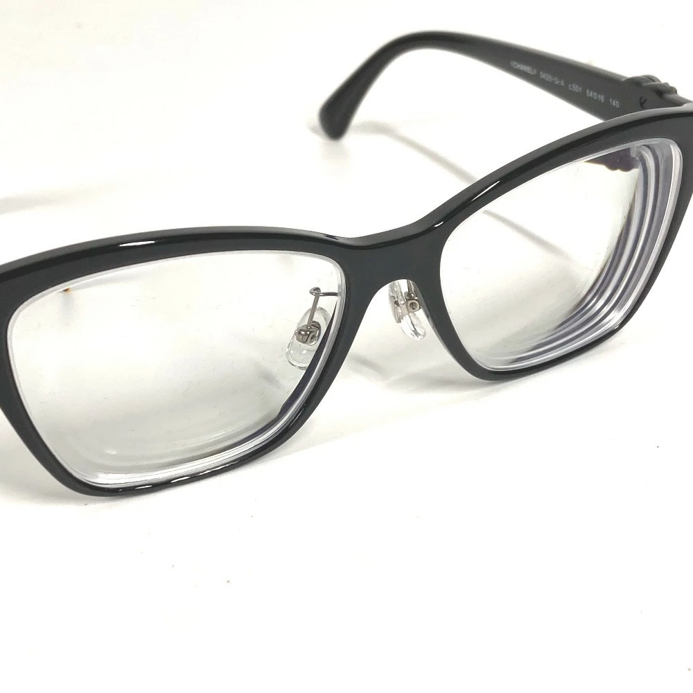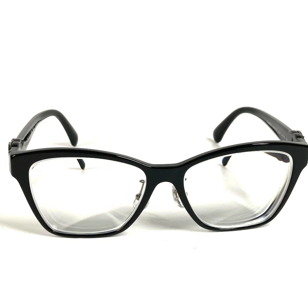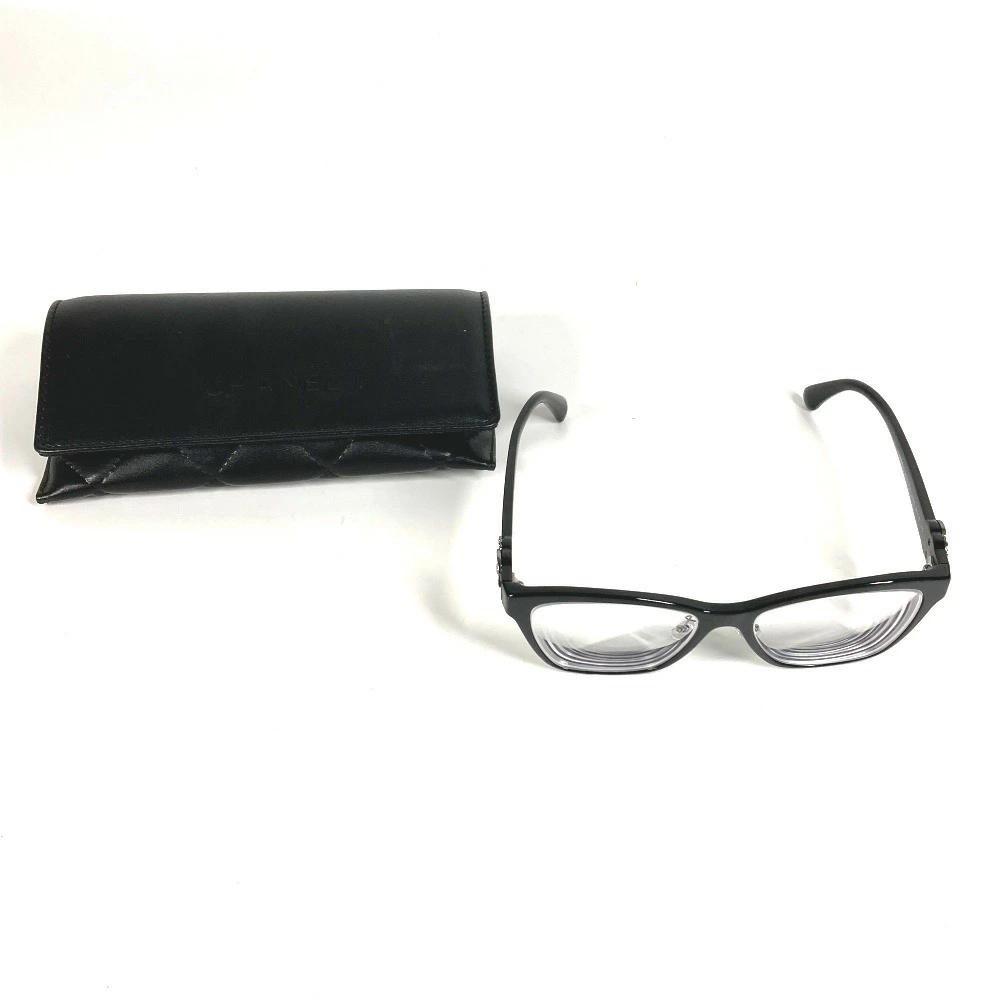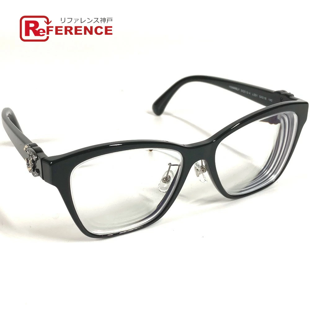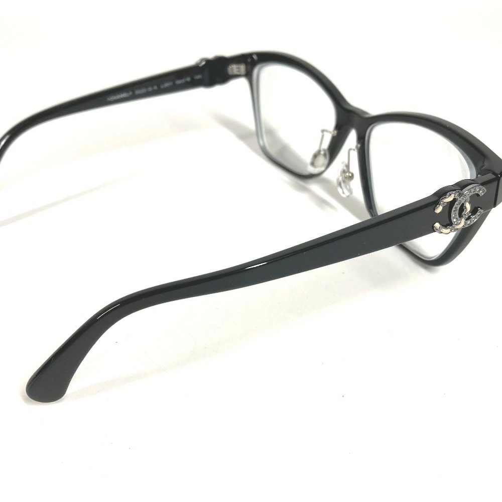 Pre-owned CHANEL 3420-Q-A CC Coco Mark Logo Rhinestone Chain Eyeglasses Sunglasses Plastic Women's Black