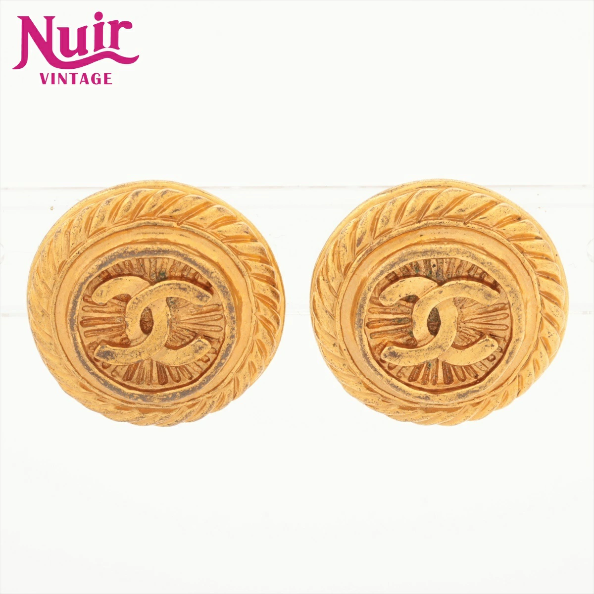 Pre-owned Chanel 93P 1993 Round Coco Mark Earrings, Gold, WS16359
