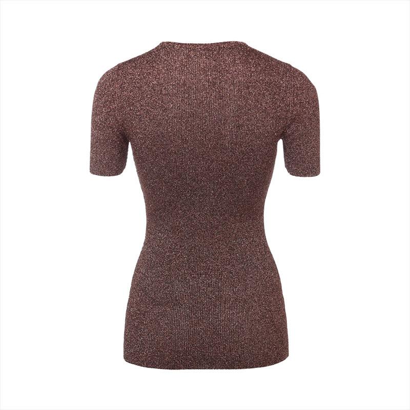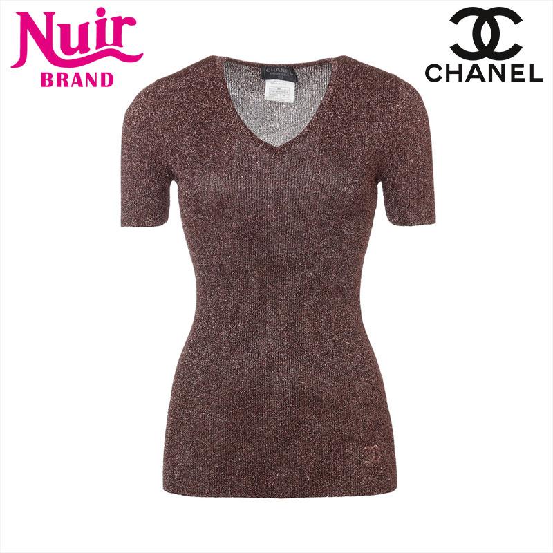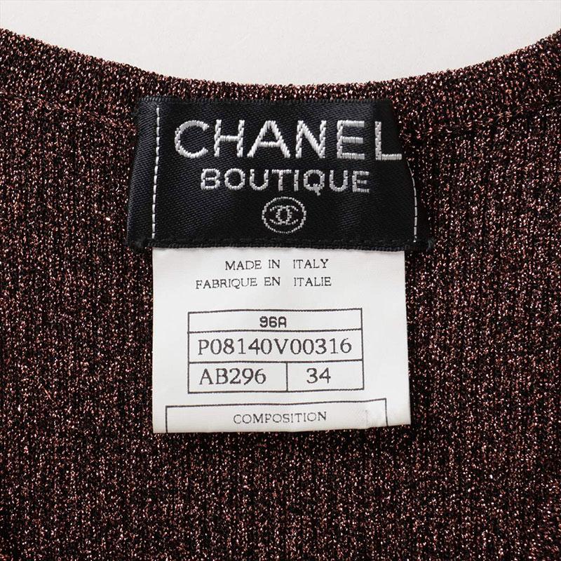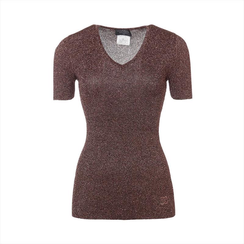Pre-owned Chanel 96A Size: 34 Lamé Rayon Short Sleeve T-Shirt, Brown, WS15565