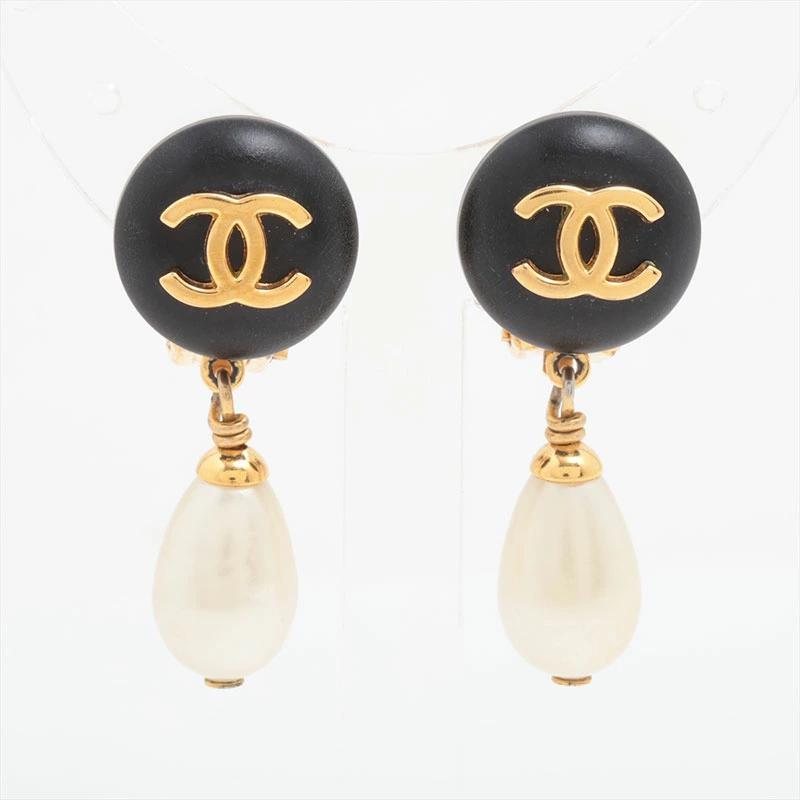 Pre-owned Chanel 97P Pearl Swing Earrings, Gold, WS15809