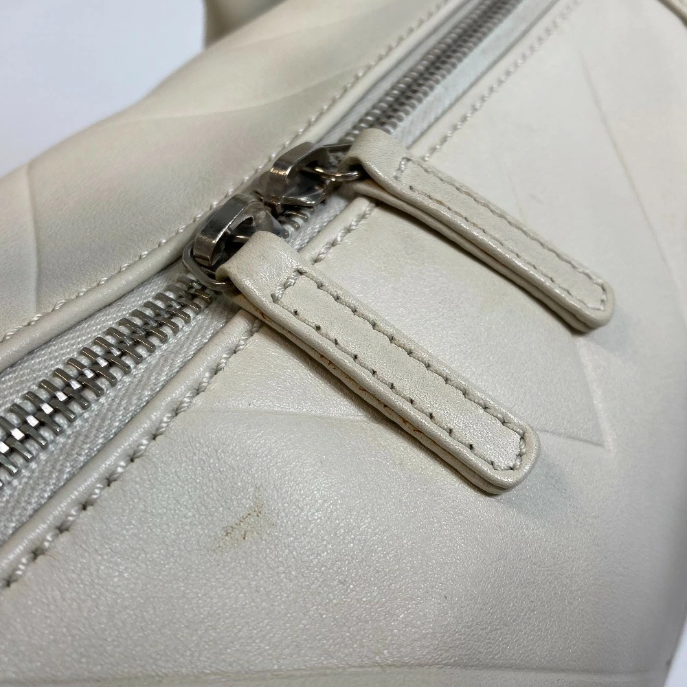 | 状態コメント | バッグ表面の生地に青っぽく色移り、内側ファスナー付近の生地に茶色っぽい染みが見られます。 |