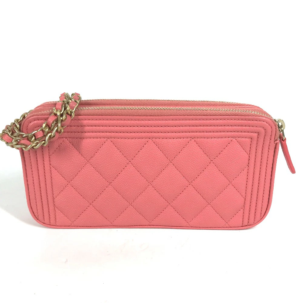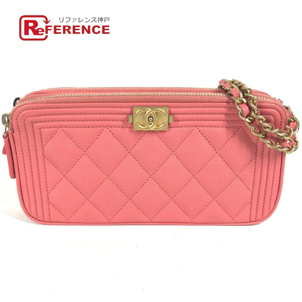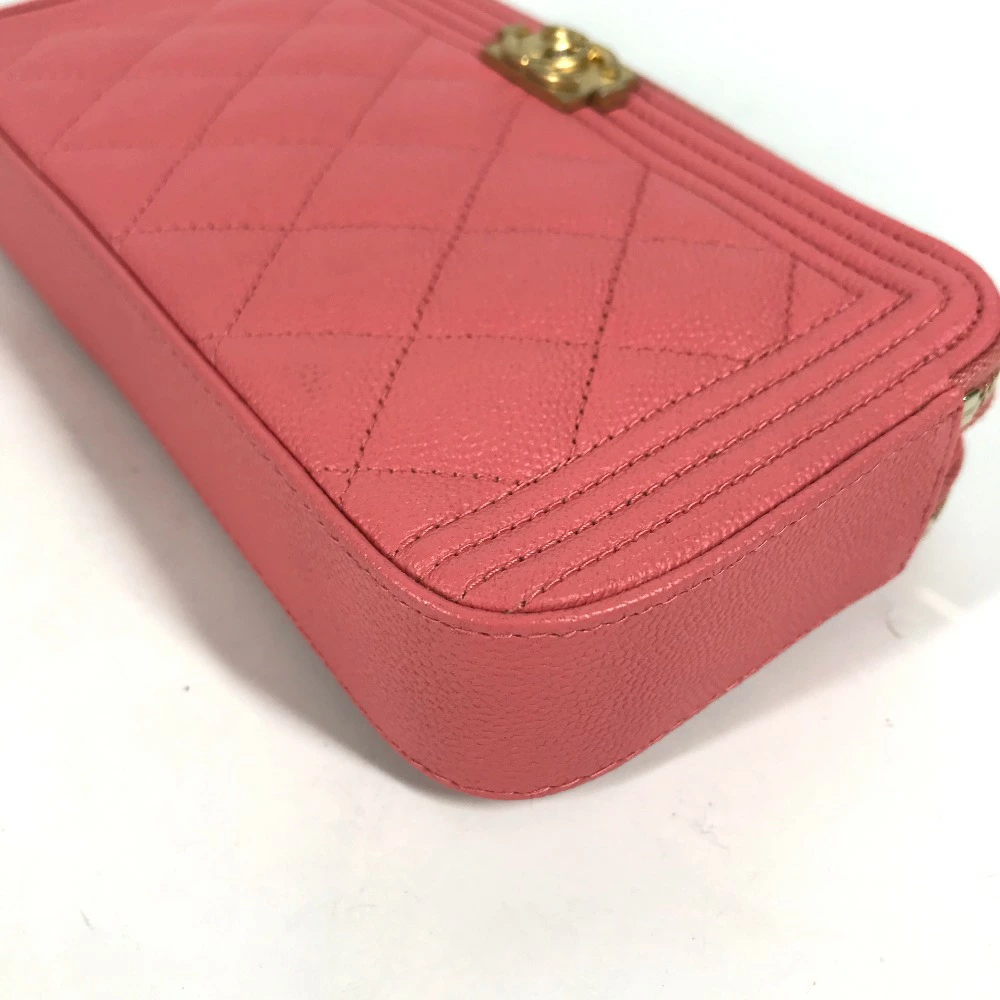 Pre-owned CHANEL A84069 CC Coco Mark Boy Chanel Coco Mark Shoulder Bag, Crossbody Long Wallet, Caviar Leather, Women's, Pink with Gold Hardware
