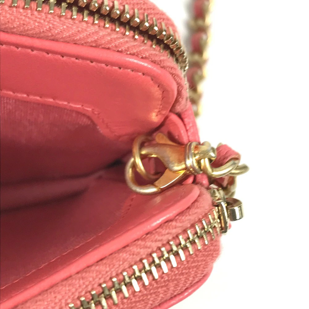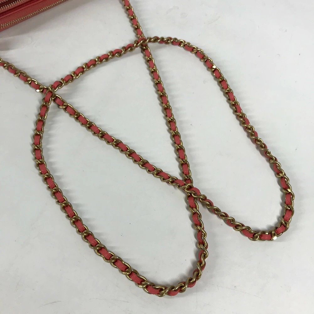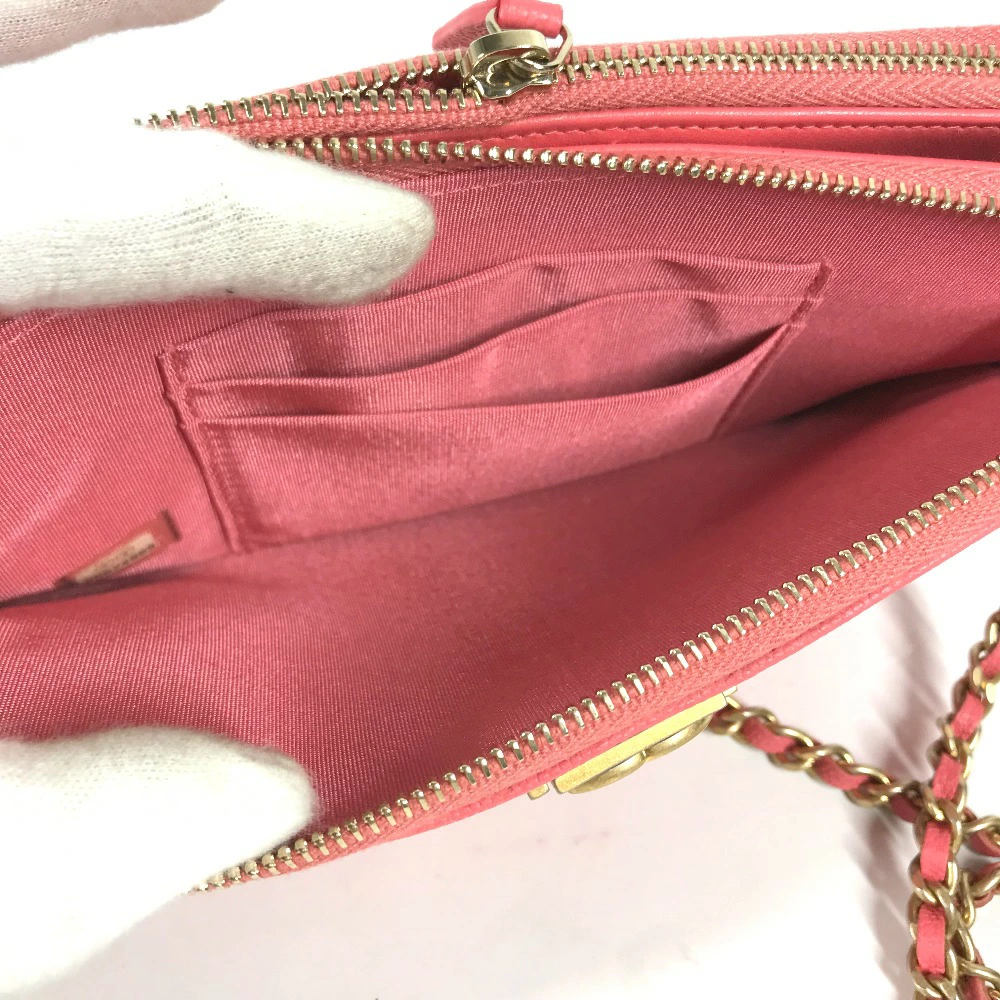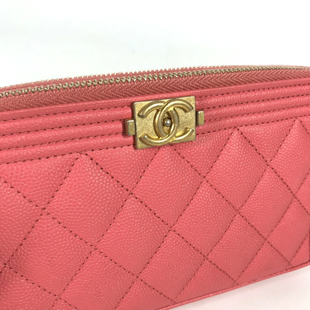 Pre-owned CHANEL A84069 CC Coco Mark Boy Chanel Coco Mark Shoulder Bag, Crossbody Long Wallet, Caviar Leather, Women's, Pink with Gold Hardware