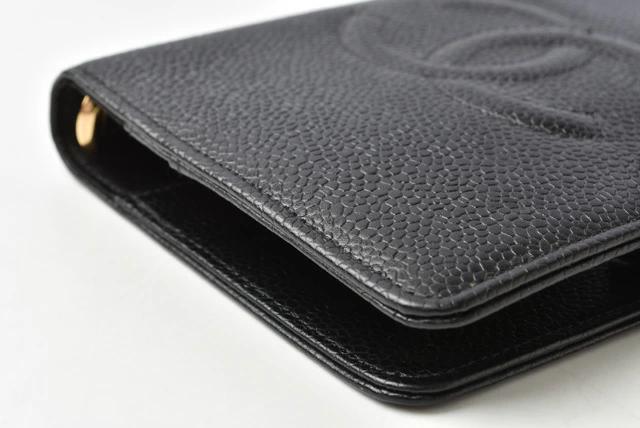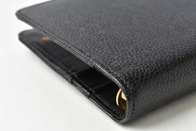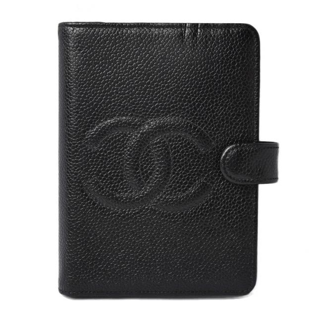 シャネルの入手困難なシステム手帳カバーです。キャビアスキン素材に、ココマークステッチが高級感を漂わせます。
