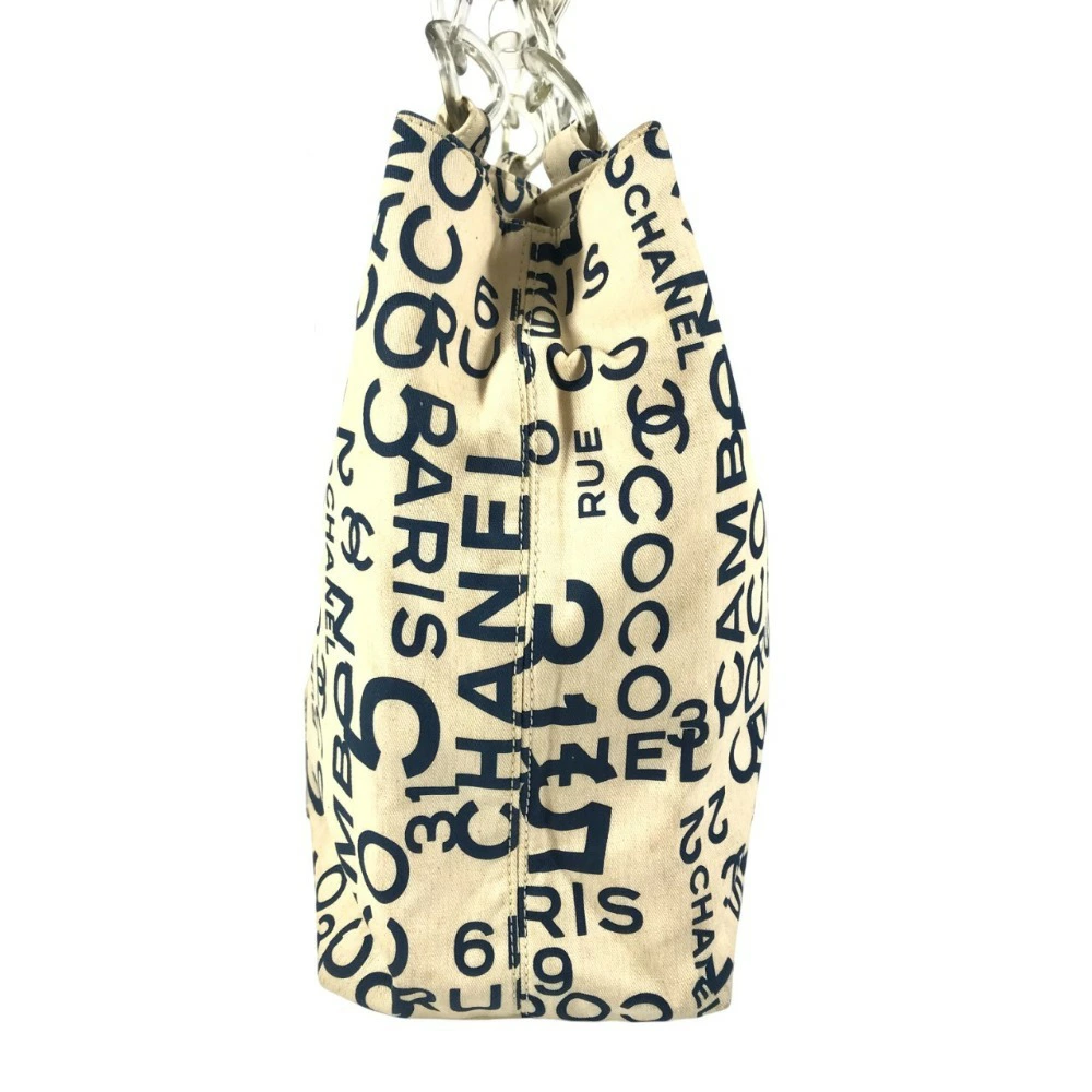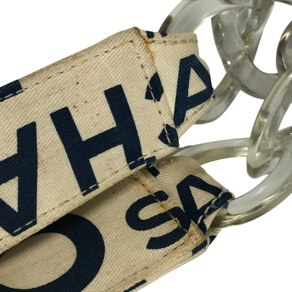 Pre-owned CHANEL Bi-Cea CC Coco Mark logo shoulder bag with plastic chain, tote bag, canvas shoulder bag, white.