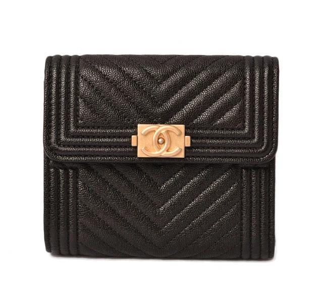 CHANEL ボーイシャネル シェブロン 3折財布 A80734 ブラック/マットゴールド金具