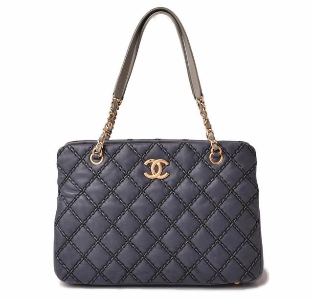 シャネルより、ヴィンテージカラーのチェーントートバッグです。スクエア型のかちっとしたフォルム。ワイルドステッチがアクセントに。大き目の前後のコンパートメントも荷物の仕分けに便利。通勤通学にも最適です。