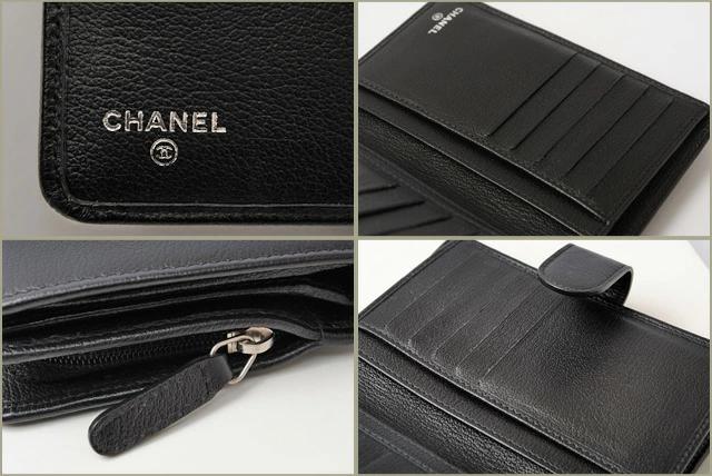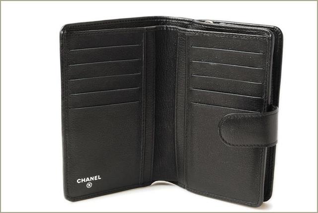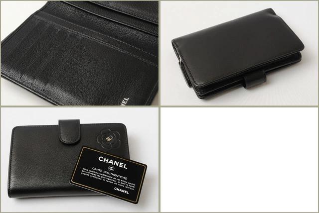 CHANEL バタフライ カメリア型押し 折財布 ブラック