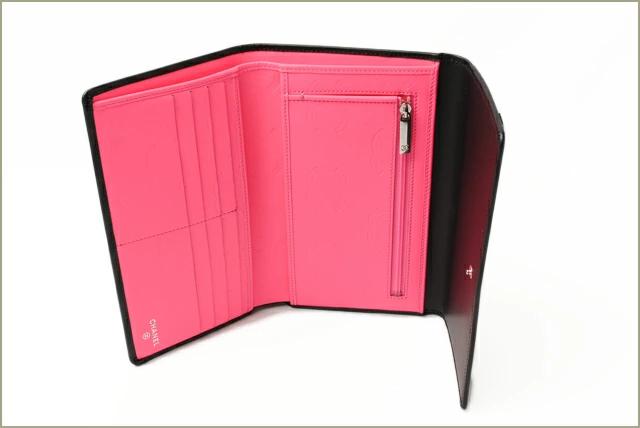 長財布 3折 カンボンライン ブラック/ピンク A46645