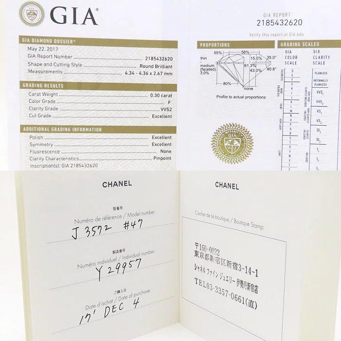 | | 重量 | 4.8g | | 付属品 | 保存箱(劣化)、鑑定書 、保証書 (2017年発行) | | 備考 | ダイヤモンド 0.30ct F.VVS2.3Excellent 直径4.3mm