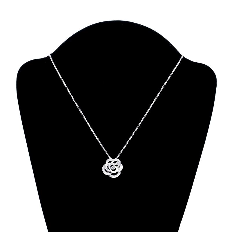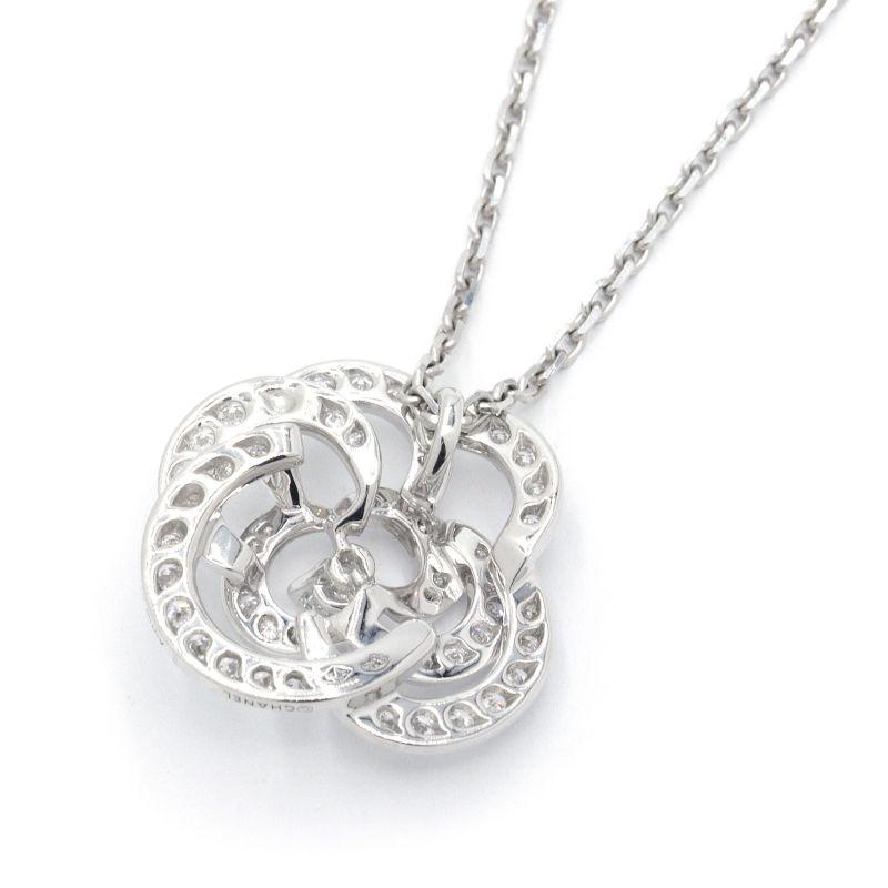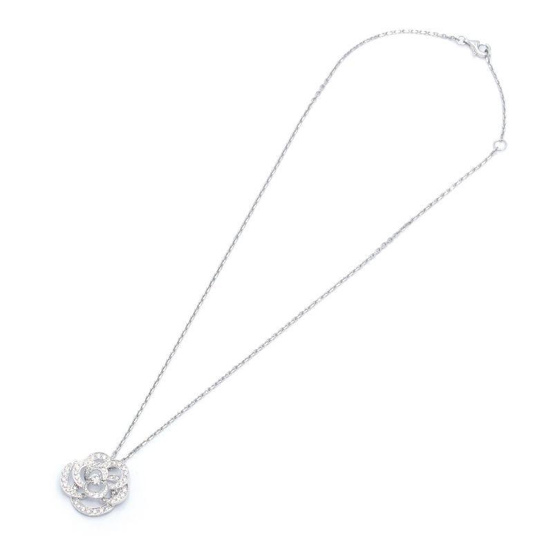 Pre-owned Chanel Camellia Collection Necklace, Medium Model J2580, 18K White Gold, Diamond Camellia Pendant, Approximately 7.3g