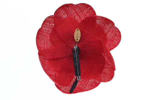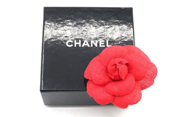 シャネルピンブローチカメリアコサージュレッドファブリック中古アクセサリーファッションレディース花フラワーCHANEL