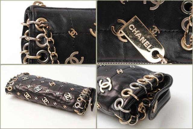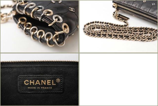 シャネルより、斜め掛けができるチェーンのついたバッグです。入手困難なレアなデザインです。キルティングステッチ×CCマーク/サイドのリングがアクセントに。