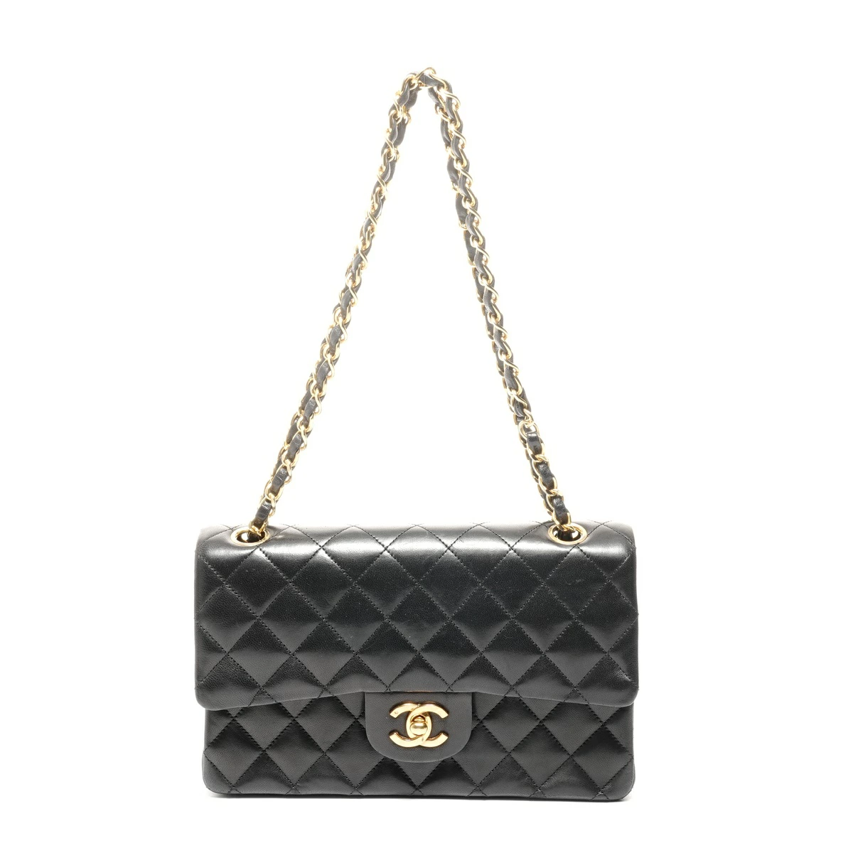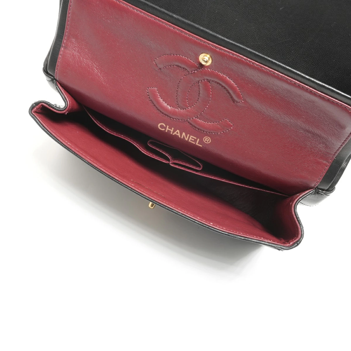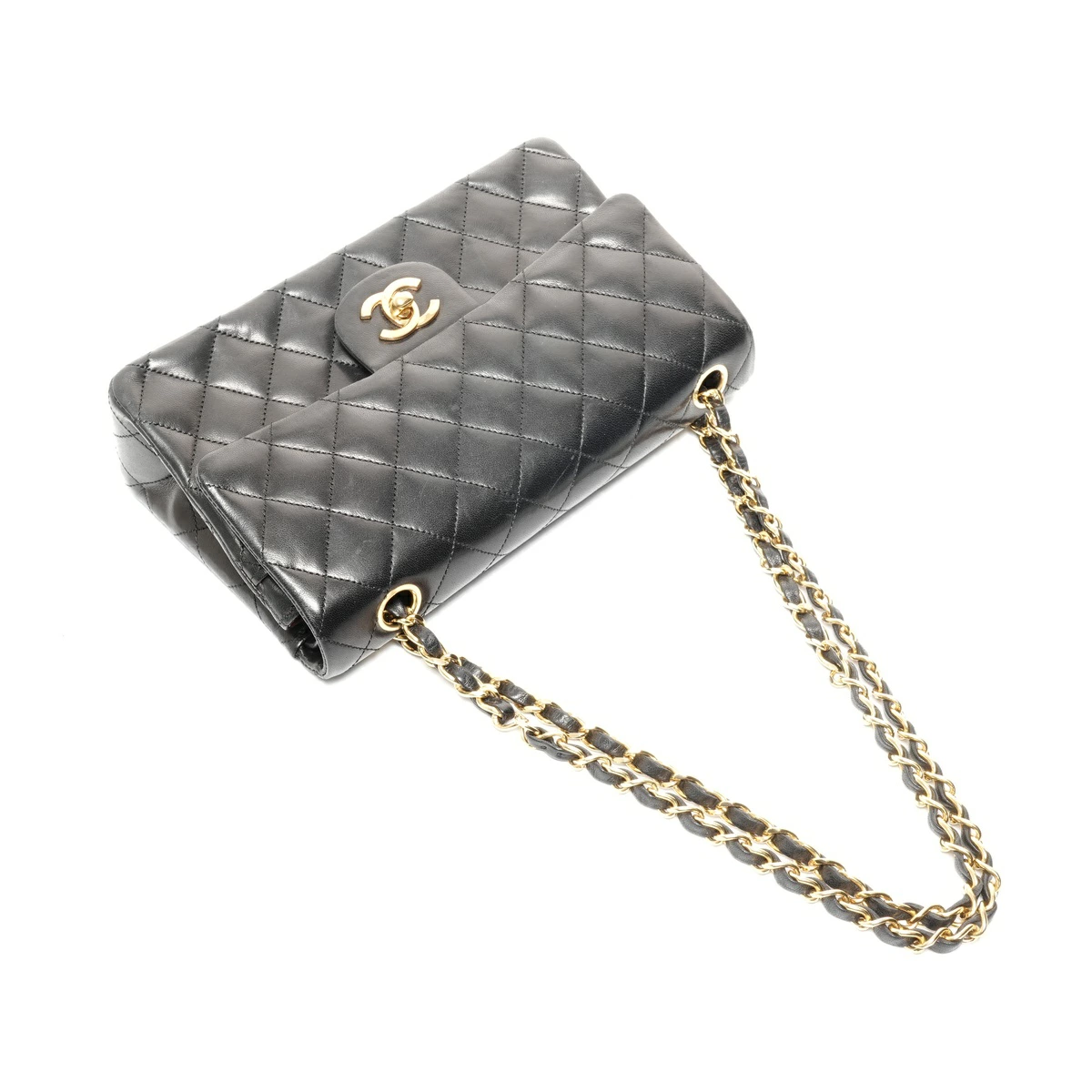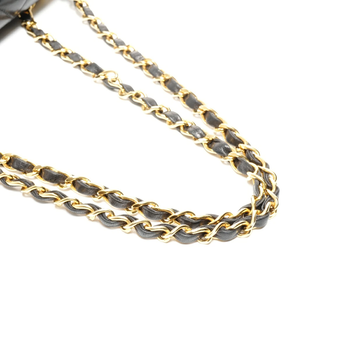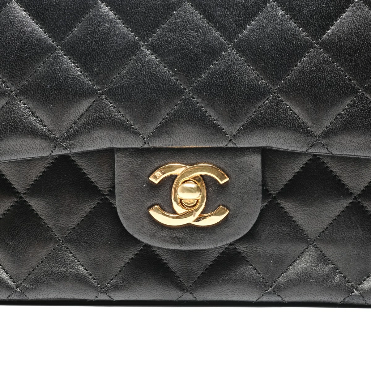 シャネル CHANEL 0番台 1986-1988 ラムスキン ミニ マトラッセ 23cm ダブルフラップ ショルダーバッグ ブラック WS24708 【中古】