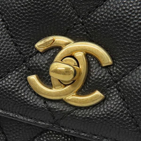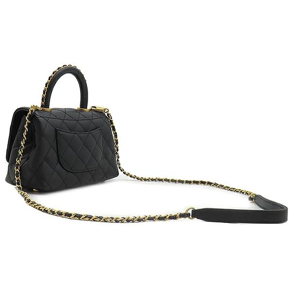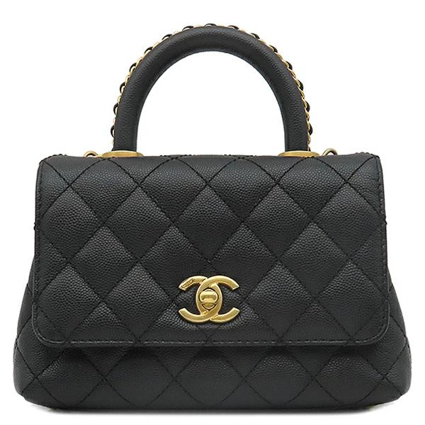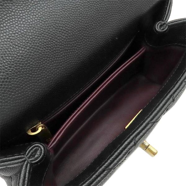 シャネル CHANEL 2WAYバッグ トップハンドル ミニ フラップ バッグ マトラッセ レザー キャビアスキン ブラック ココハンドル 黒 ショルダーバッグ ゴールド金具 ランダムシリアル AS2215 レディース 【保存袋】定番 人気 美品 【中古】