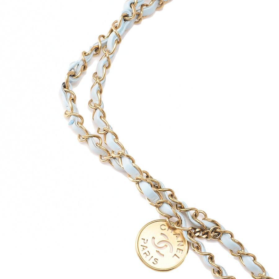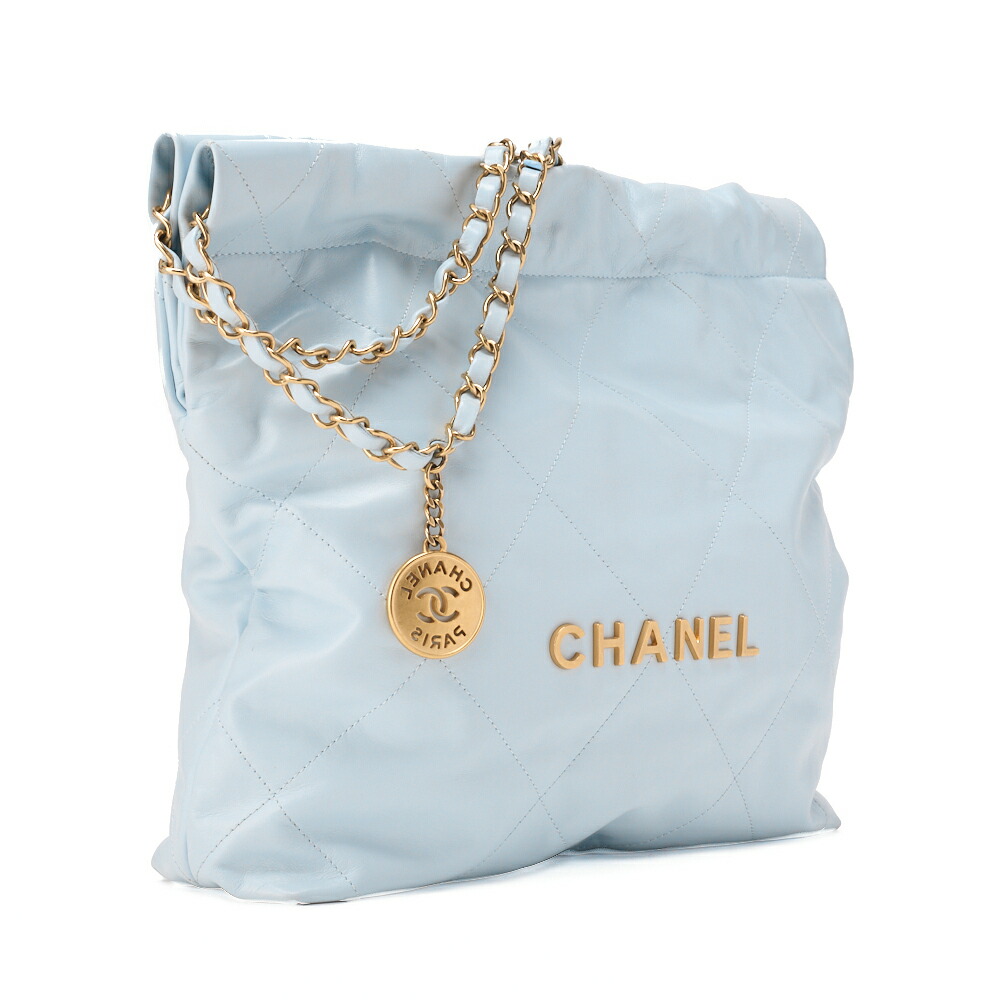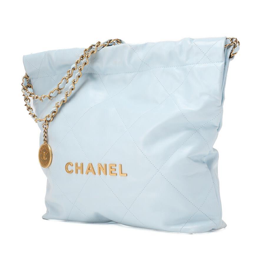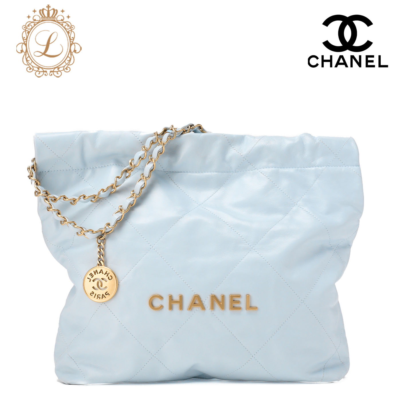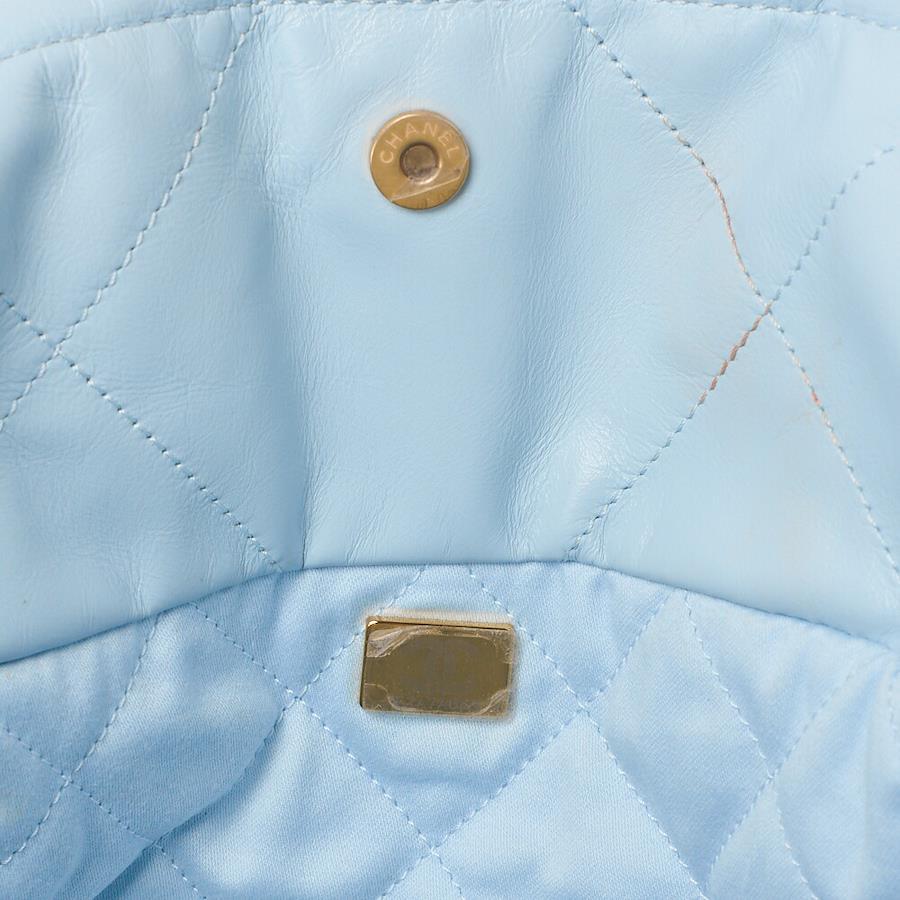 Pre-owned CHANEL Chanel 22 calfskin mint drawstring chain shoulder bag with gold hardware. Women's.