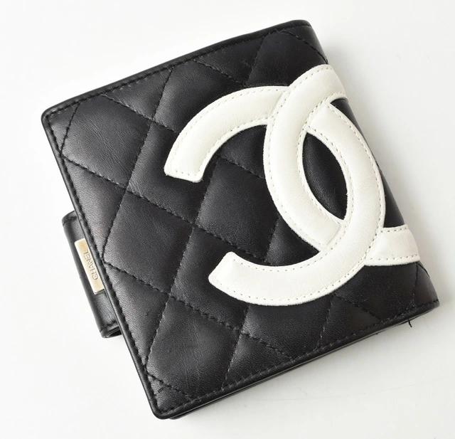 CHANEL がま口式 折財布 A26720 カンボンライン ブラック/ホワイト