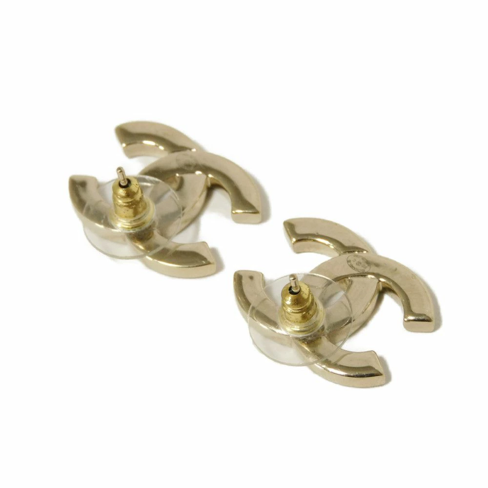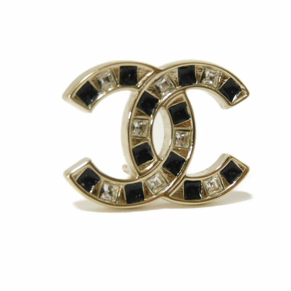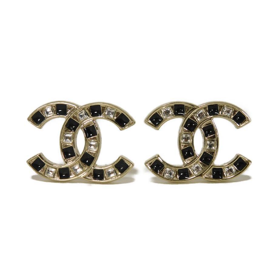 Pre-owned Chanel CHANEL earrings with crystal, Coco mark, resin, strass, clear gold studs, CC mark, and black accents. ABE807. Women's accessories, jewelry, elegant, high-end, sophisticated, sophisticated brand.