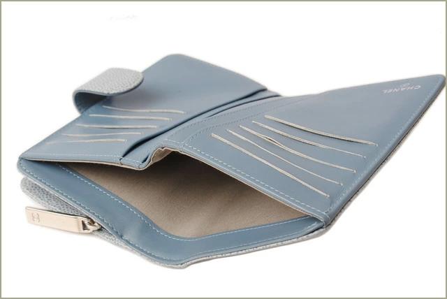 シャネルより、人気のキャビアスキンの折財布です。小銭入れが、ラウンドファスナー式で、2層分かれているため、使いやすいデザインです。ポケットも充実しており、財布の中身が多くなりがちな方も、すっきり整頓できます。
