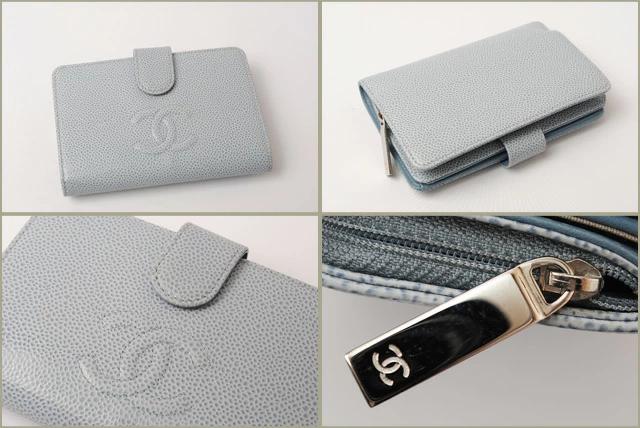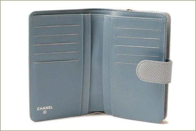 折財布 A50073 CCマーク キャビアスキン ライトブルー