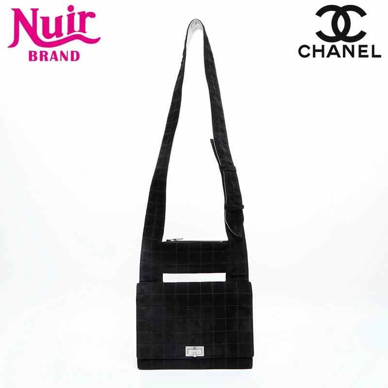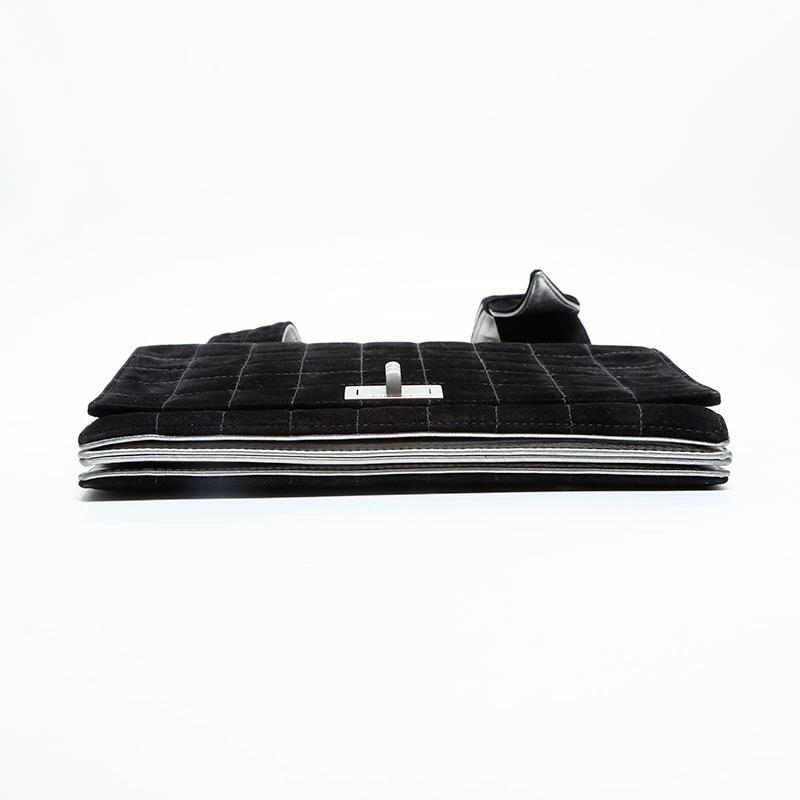 Pre-owned Chanel CHANEL No. 7 2002-2003 Suede 2.55 Chocolate Bar Shoulder Bag, Black, WS23015
