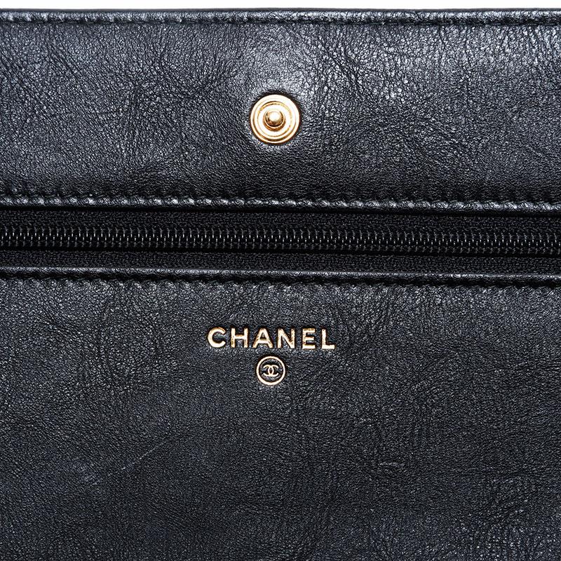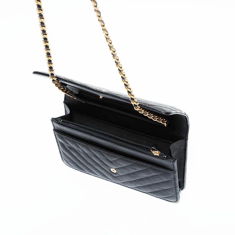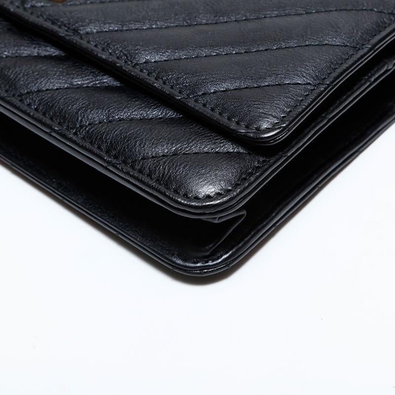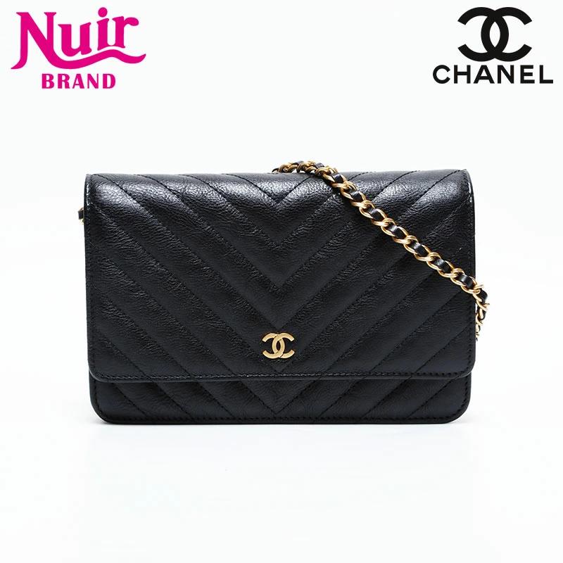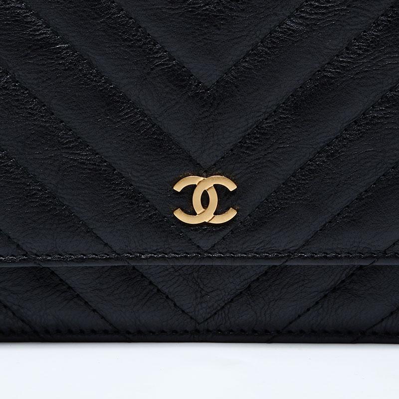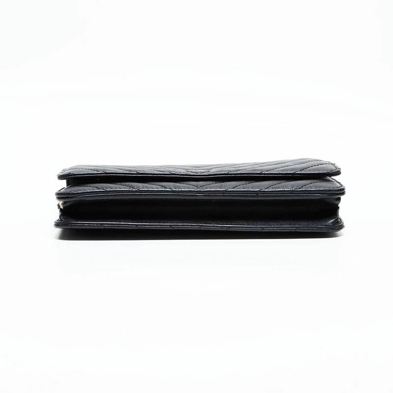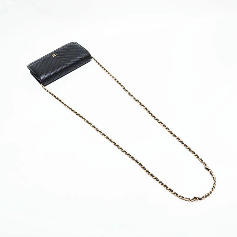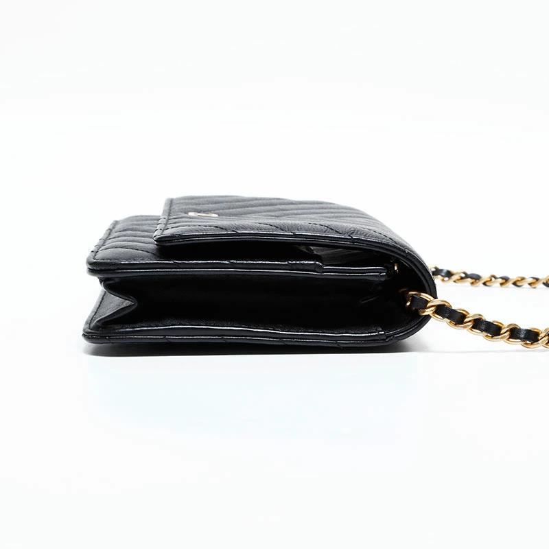 Pre-owned Chanel Chevron Leather Chain Wallet Mini 22 Series 2016-2017 Shoulder Bag, Black, WS22776